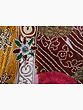 Embrace timeless elegance with this captivating pure cotton sari, a masterpiece of traditional Indian craftsmanship. The rich tapestry of mustard and warm brown hues forms the base for a symphony of intricate patterns. Bandhani, the art of tie-dye, lends a subtle, organic texture that hints at artisanal heritage. This sari is not merely a garment; it's a story woven with threads of culture and tradition.
