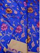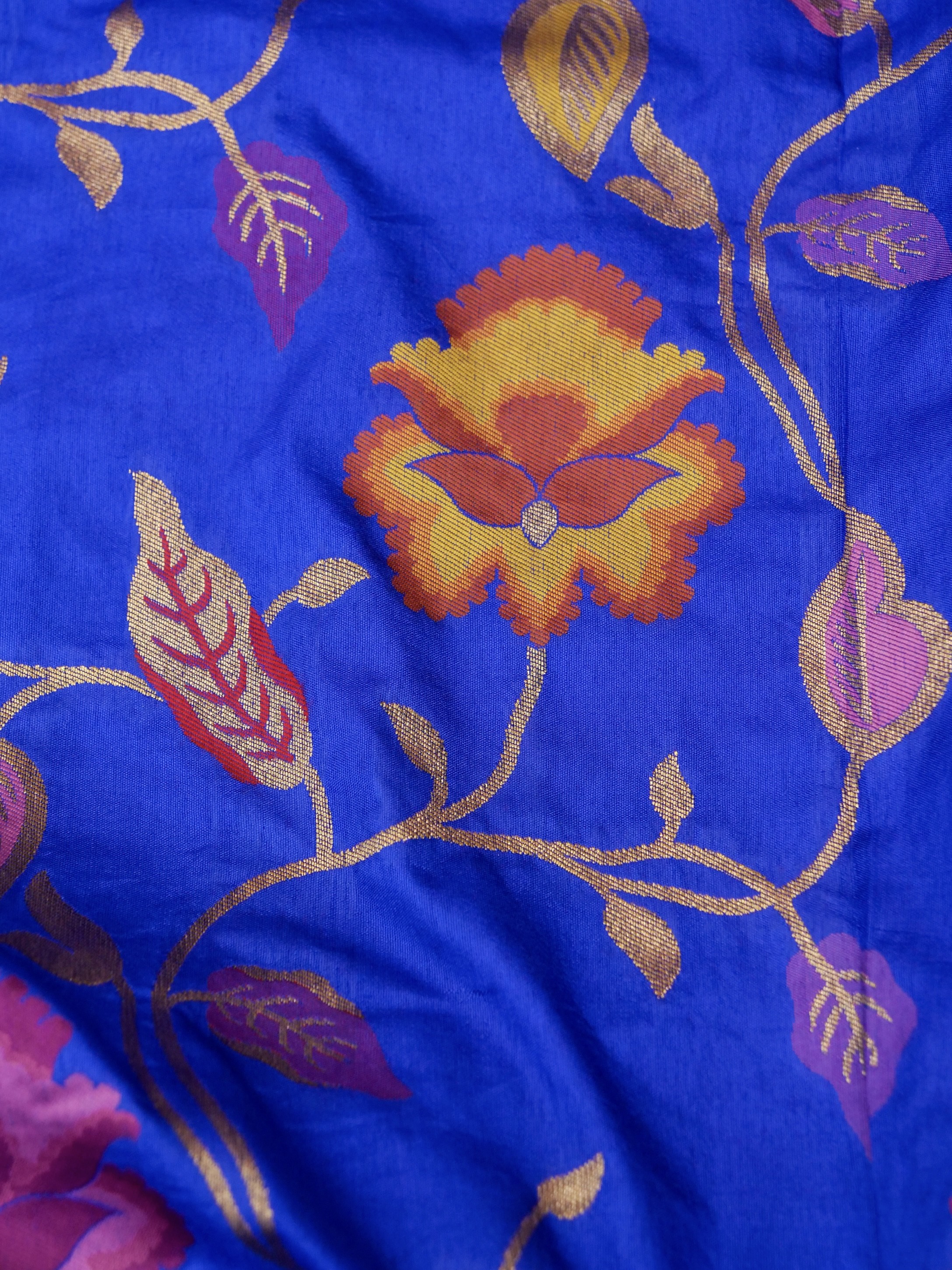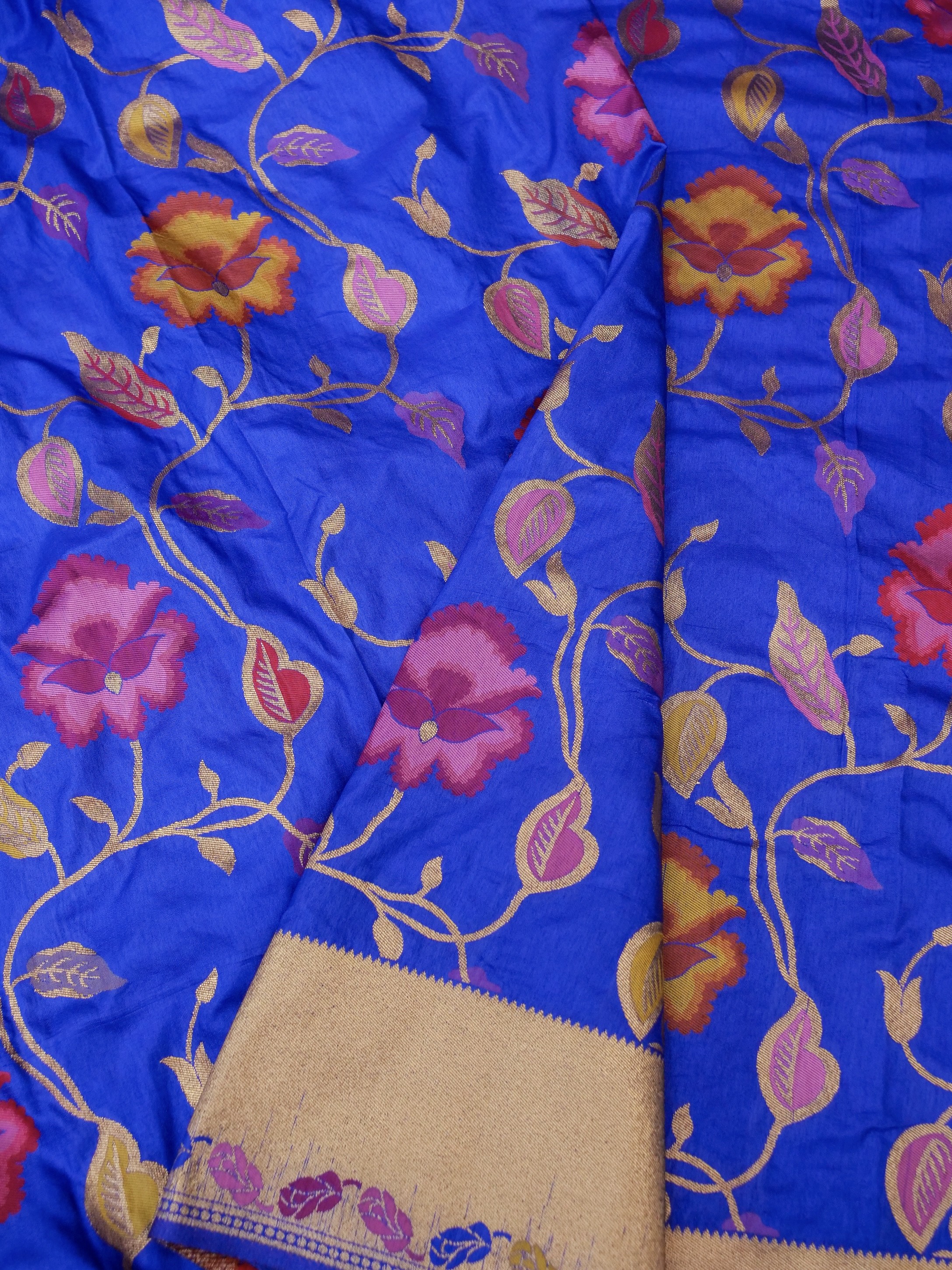 A magnificent blue tone on the fabric of this Banarasi saree makes it a timelessly fashionable piece of traditional Indian wear, which you can drape and turn heads in those upcoming events.