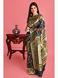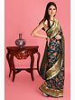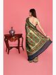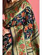 Navy-Blue Handloom Pure Silk Banarasi Sari with Kadhwa Woven Flowers All-over