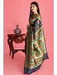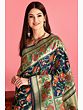5. Designed in hues of navy blue, this sari is decked with an adorable orange, green and pink floral pattern which enhances the Banarasi grace.