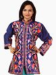 Denim-Blue Jacket from Kashmir with Crewel Embroidered Flowers