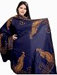 Navy-Blue Kashmiri Shawl with Sozni Embroidered Paisleys