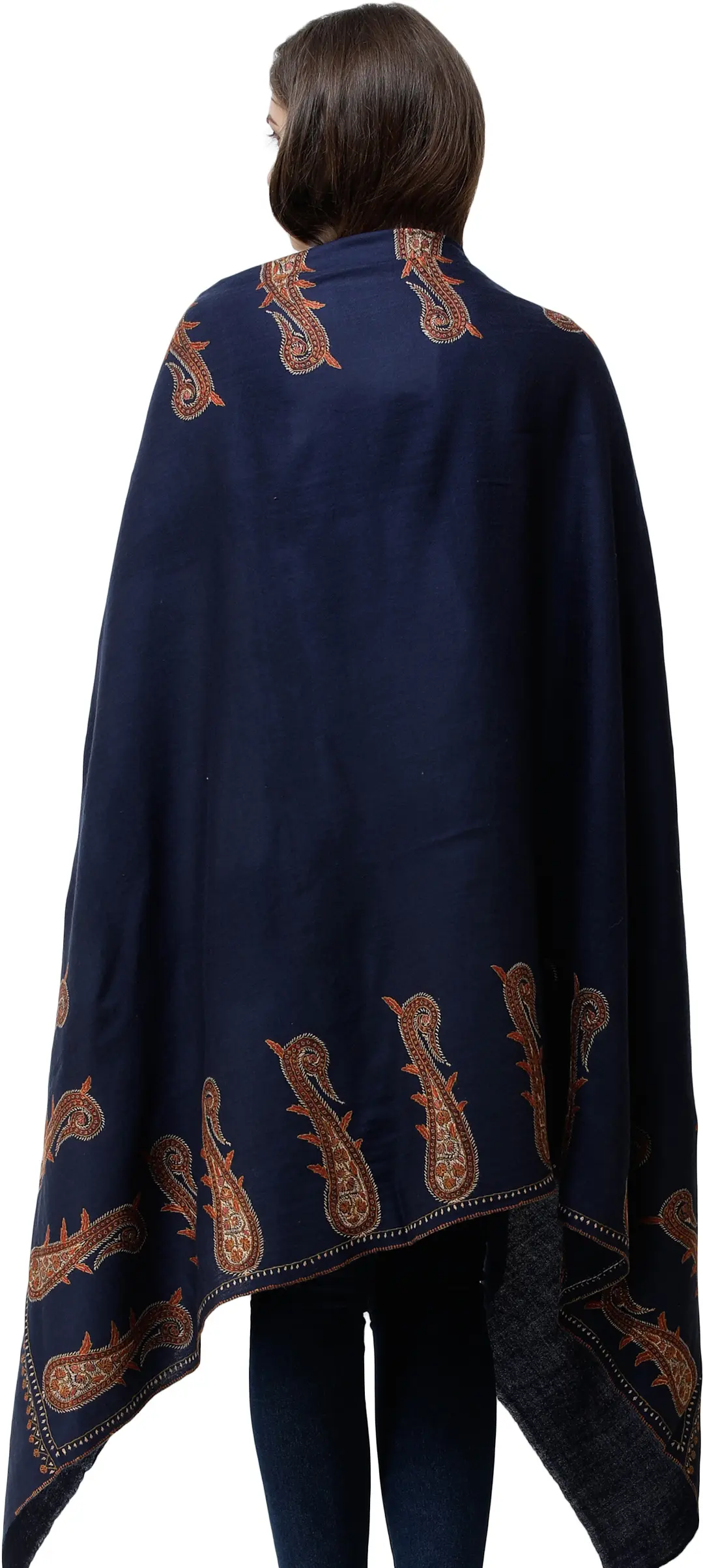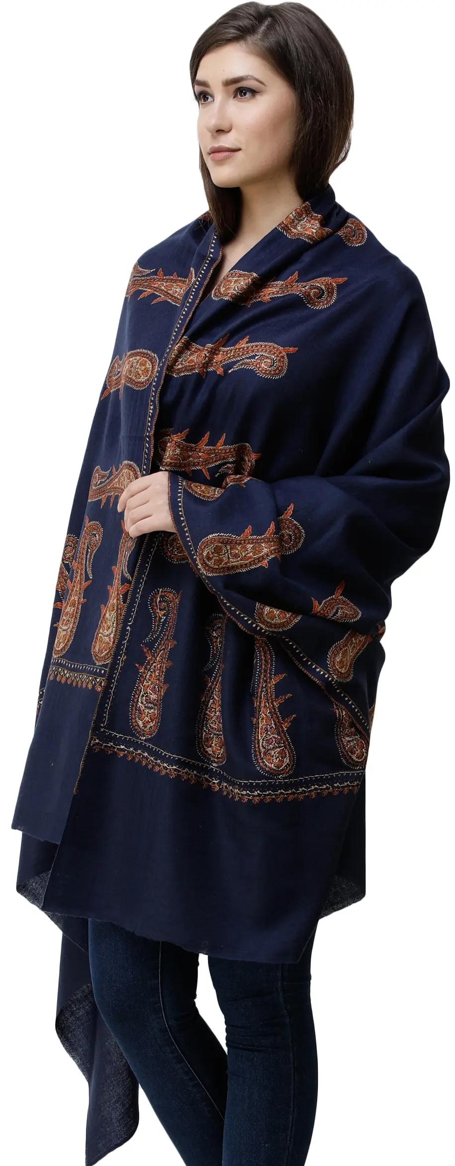 Kashmiri Tusha Stole with Sozni Hand Embroidered Paisleys and Large Chakra