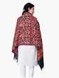 Racing-Red Woolen Stole from Kashmir with Aari-Embroidered Flowers by Hand