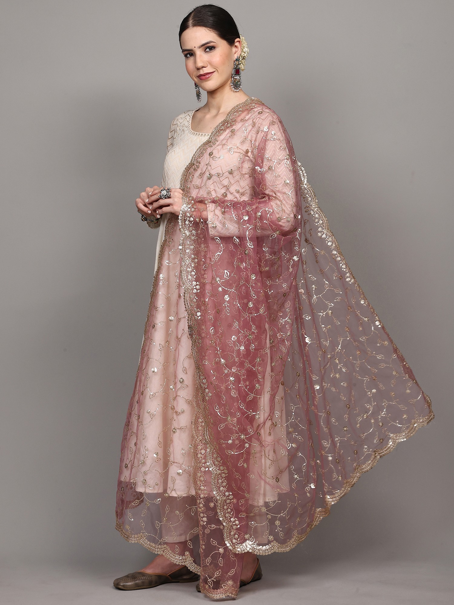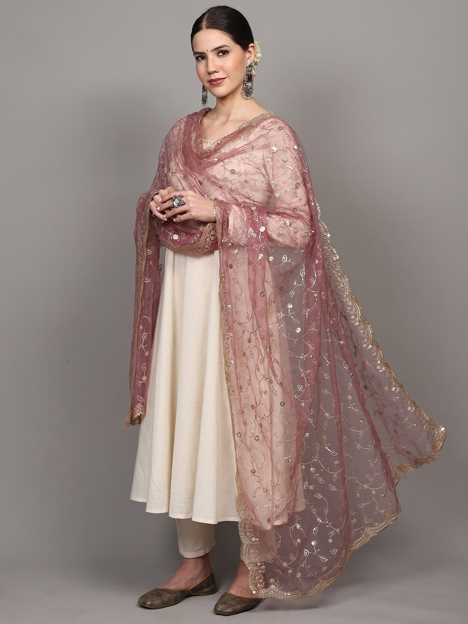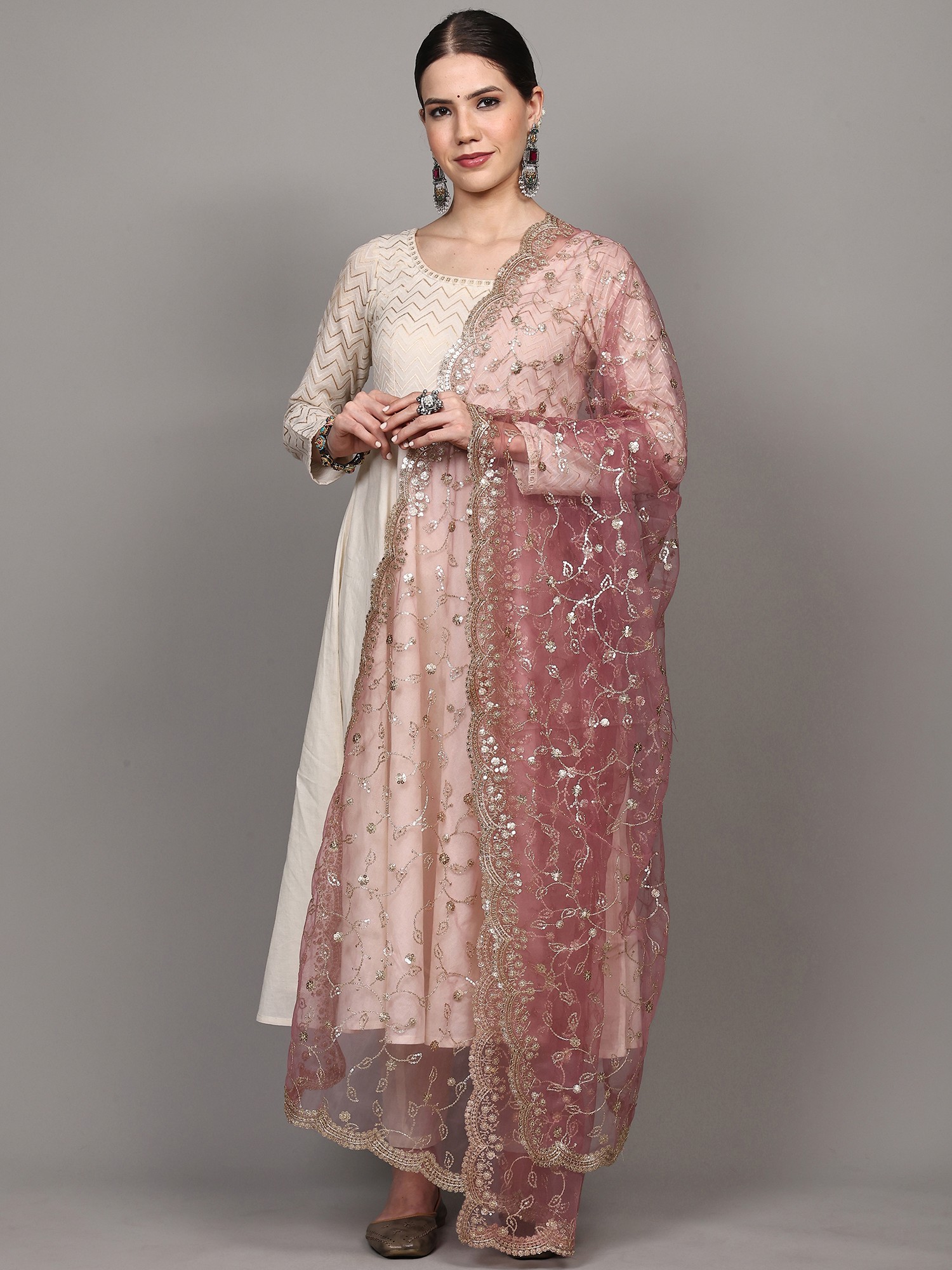 This net dupatta is an incredibly versatile addition to any ethnic wardrobe. It is the perfect accompaniment to traditional Indian attire such as kurtis, lehengas, and salwar kameez sets. Drape it elegantly over your shoulders for a wedding or festive occasion, or use it to elevate a more casual outfit. The delicate nature of the net and the sparkling embellishments make it suitable for both formal events and more intimate gatherings. Its generous size allows for various draping styles, offering you the flexibility to express your personal style.