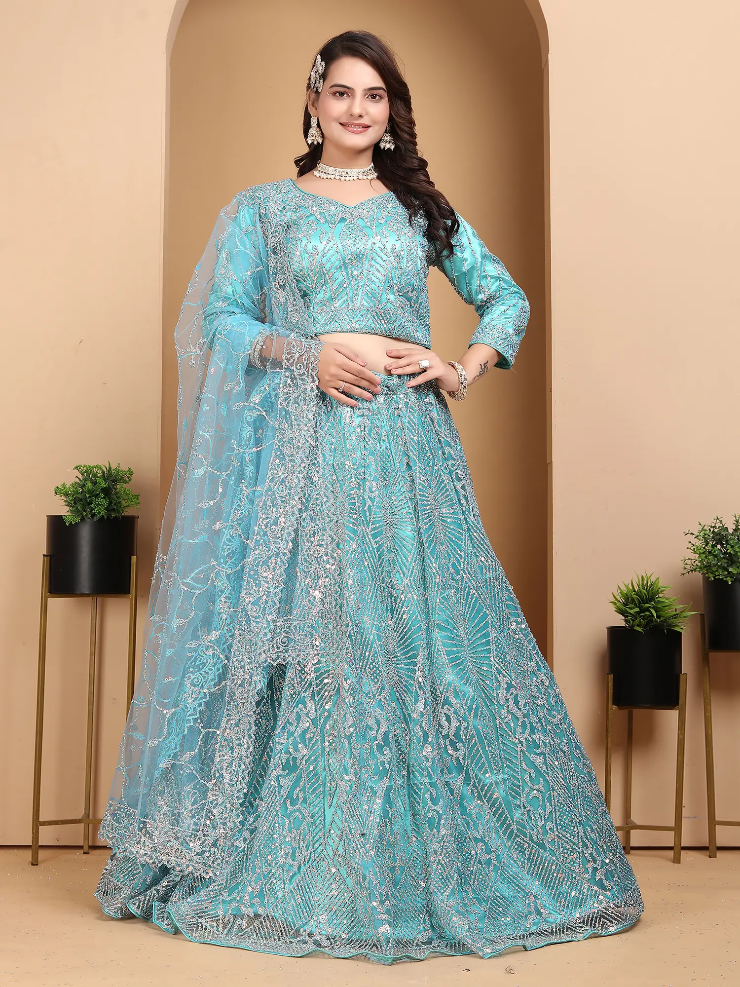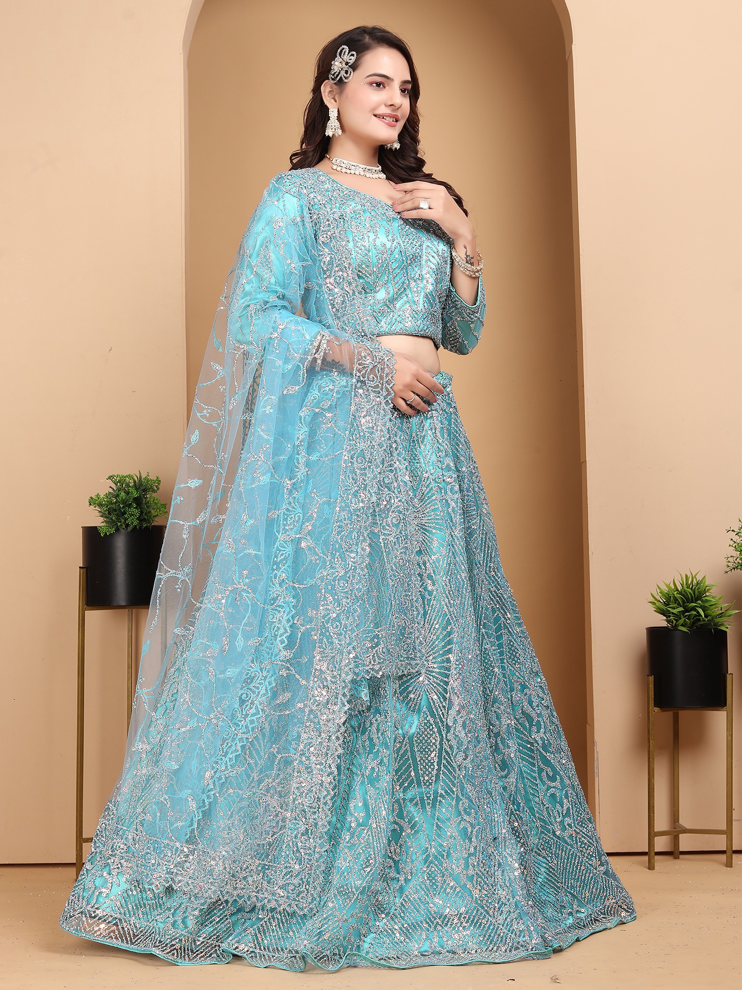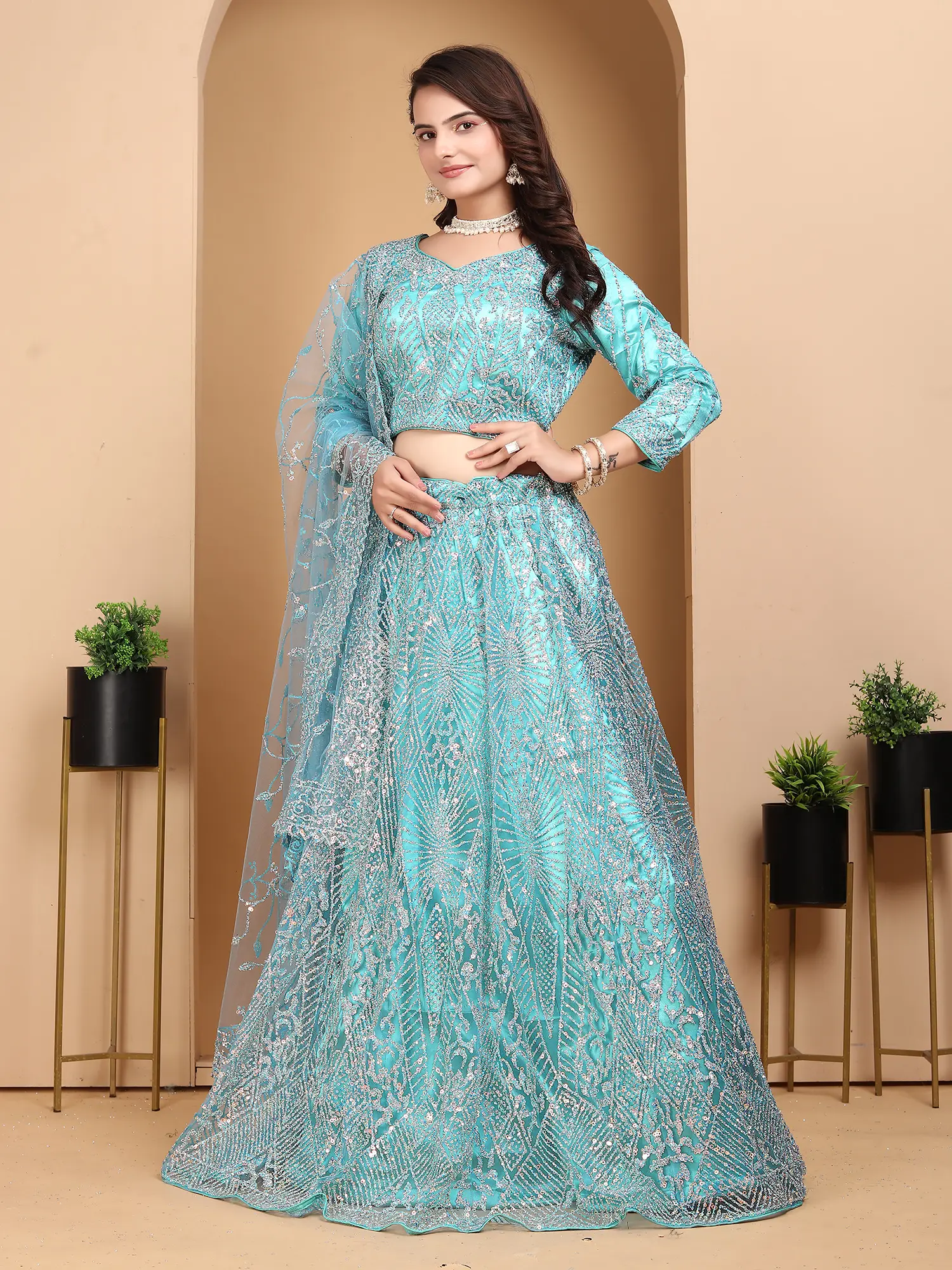 Pure Organza Zarkan And Sequins Work Elegant Lehenga Choli With Matching Dupatta