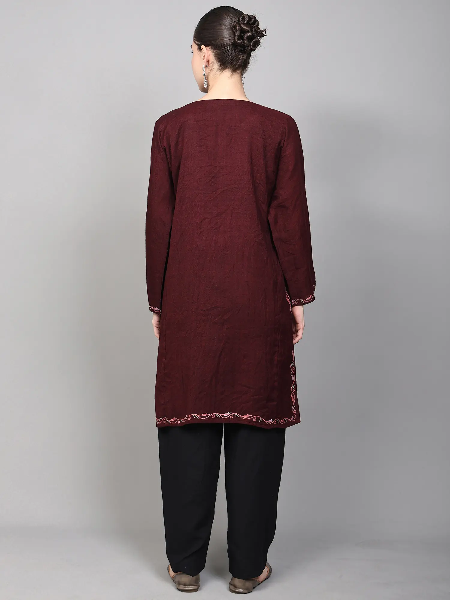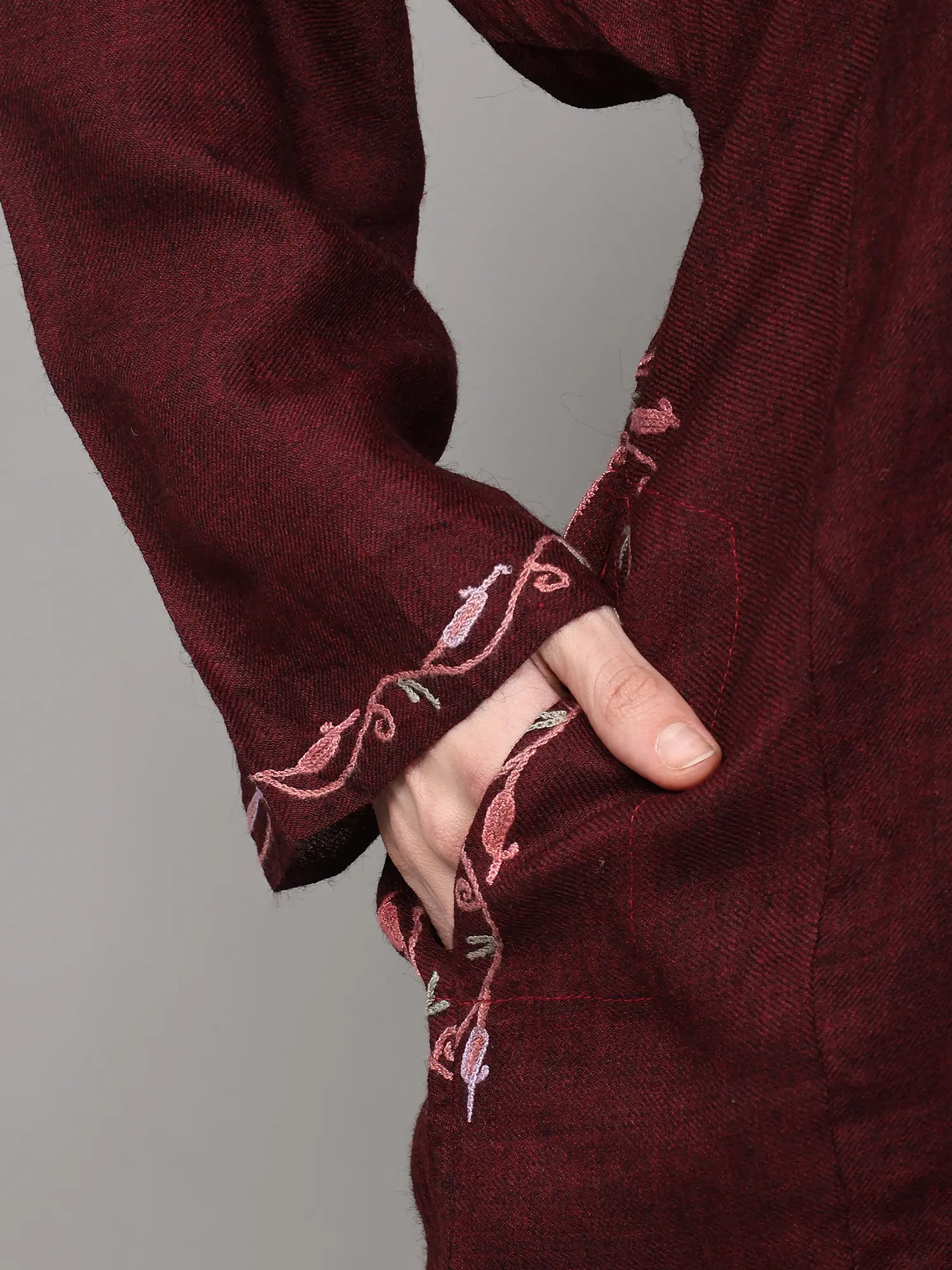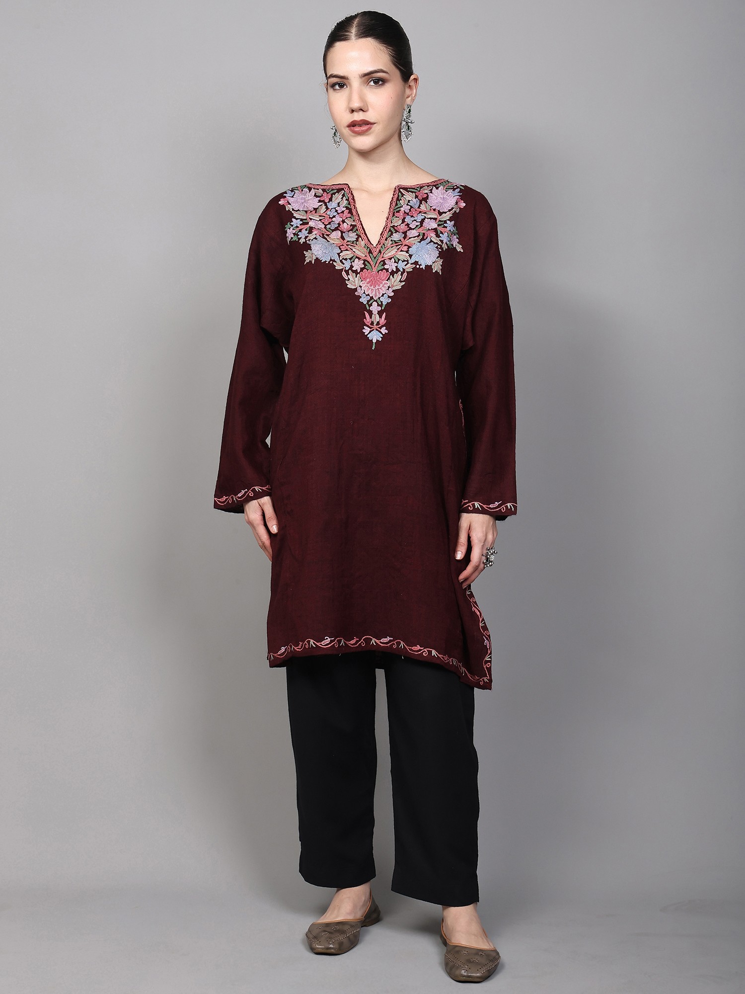 Kashmiri Phiran with Side Pockets and Aari Embroidered Paisleys on Neck