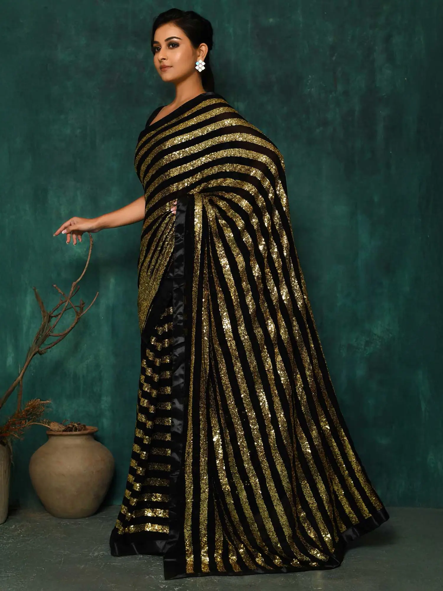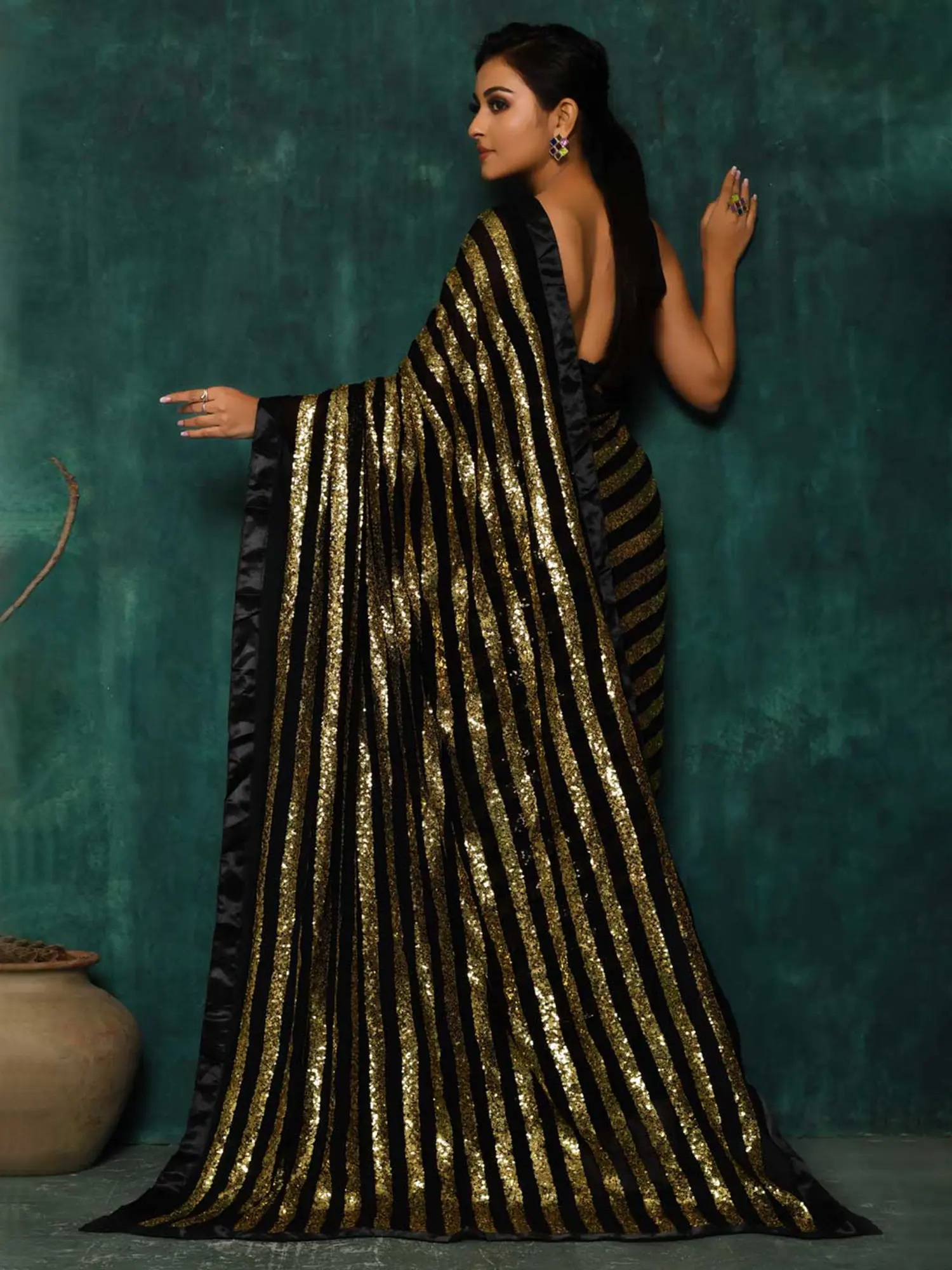 Sequins Weaving Silk Saree with Digital Print Blouse