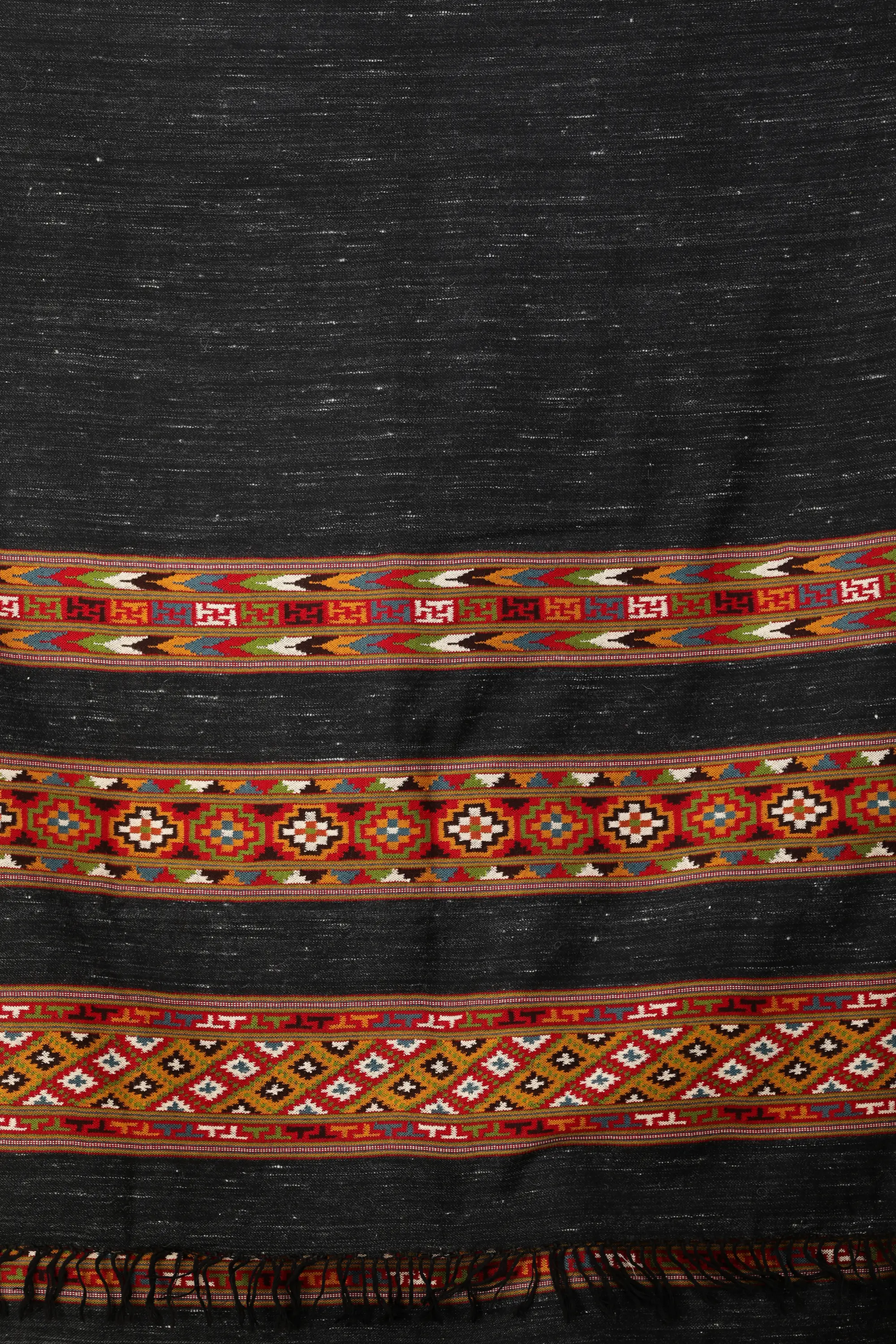Once the weaving process is done, a fine fabric is obtained and now the artisans begin fabricating traditional designs (geometrical shapes and floral motifs) by hand using bright-colored threads.