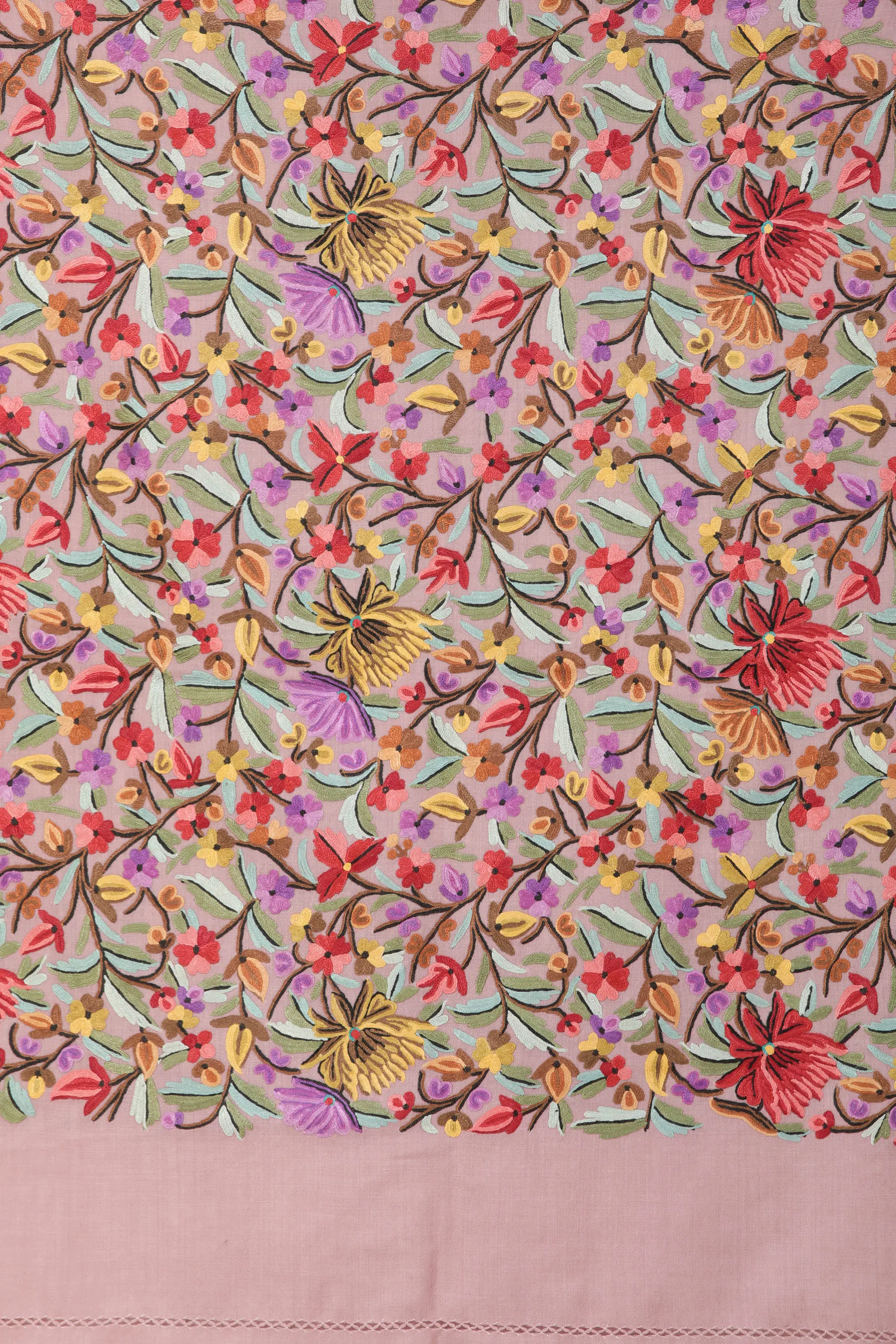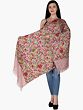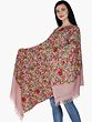 Nostalgia-Rose Stole from Kashmir with Aari Embroidered Flowers in Multicolor Thread