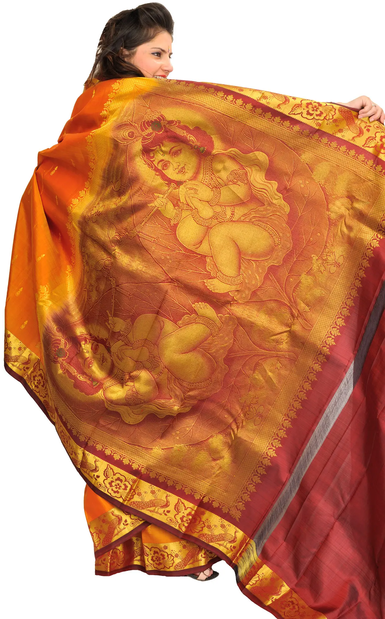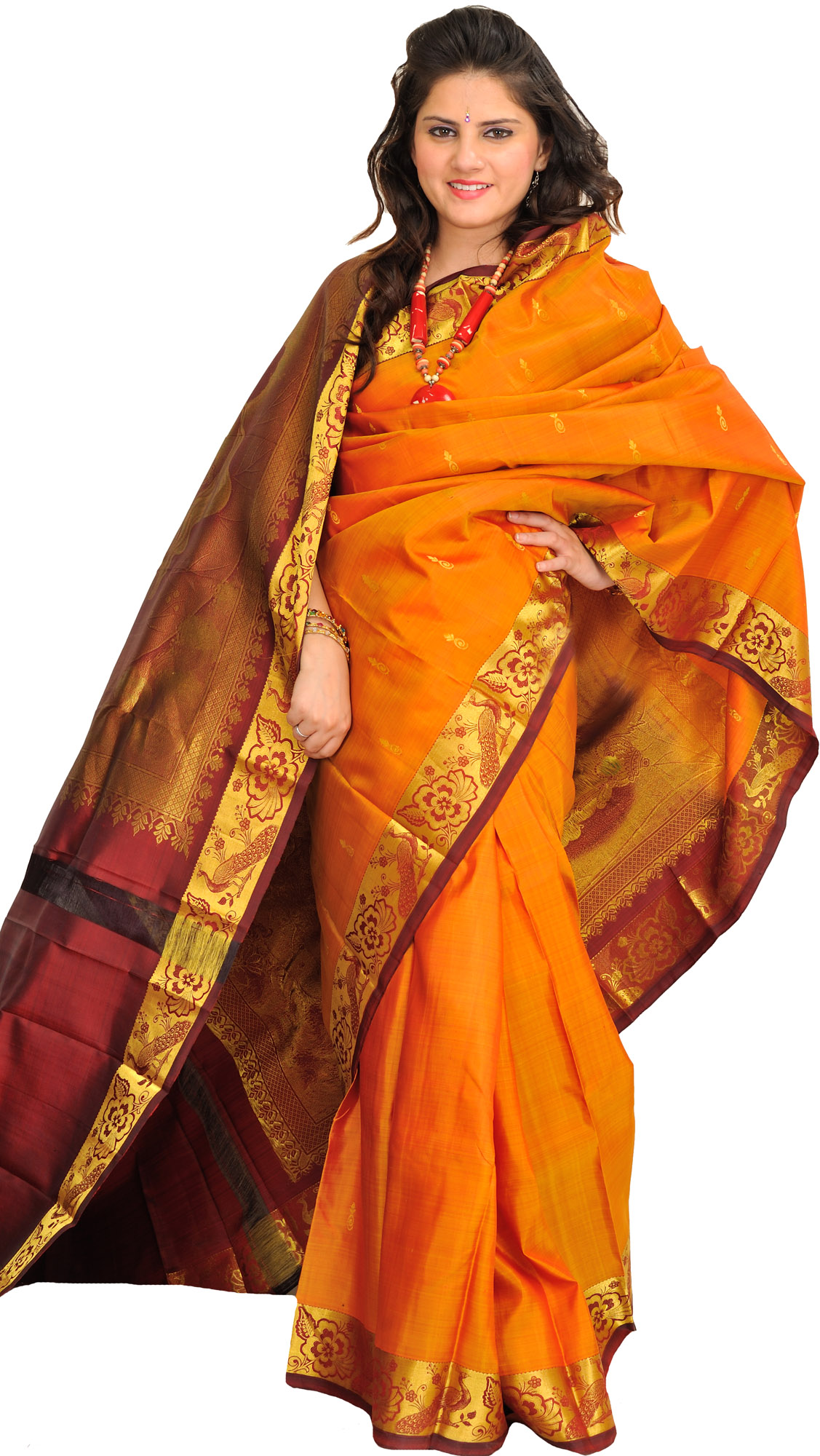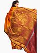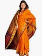 Kanji Cotton Sari from Tamil Nadu with Woven Peacock Feathers All-Over