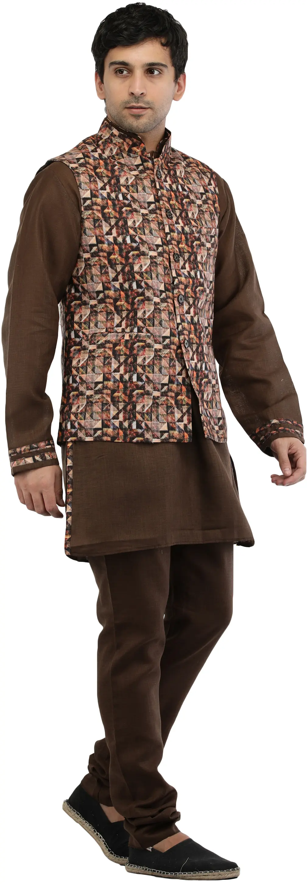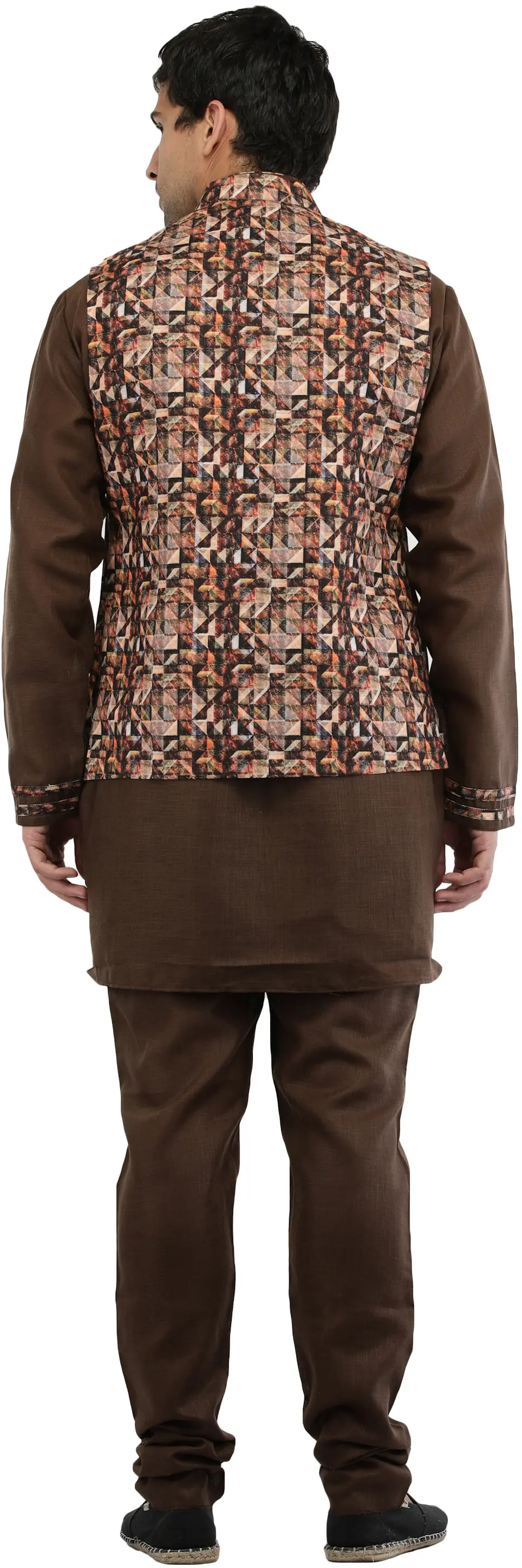 Tibetan-Red Three-Piece Wedding Kurta Pajama Set with Vest