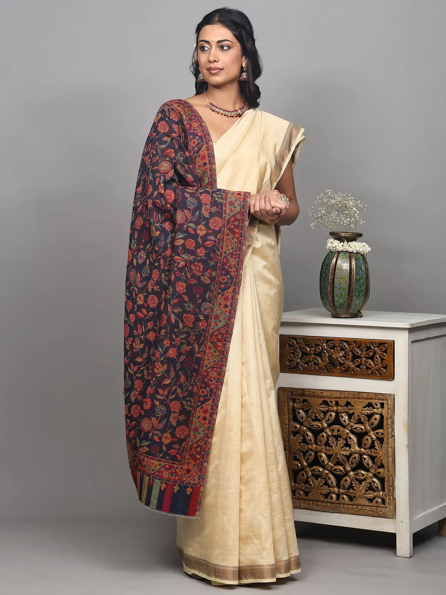Cuban-Sand Wool Shawl with Intricate Zari Woven Paisley Kani Border