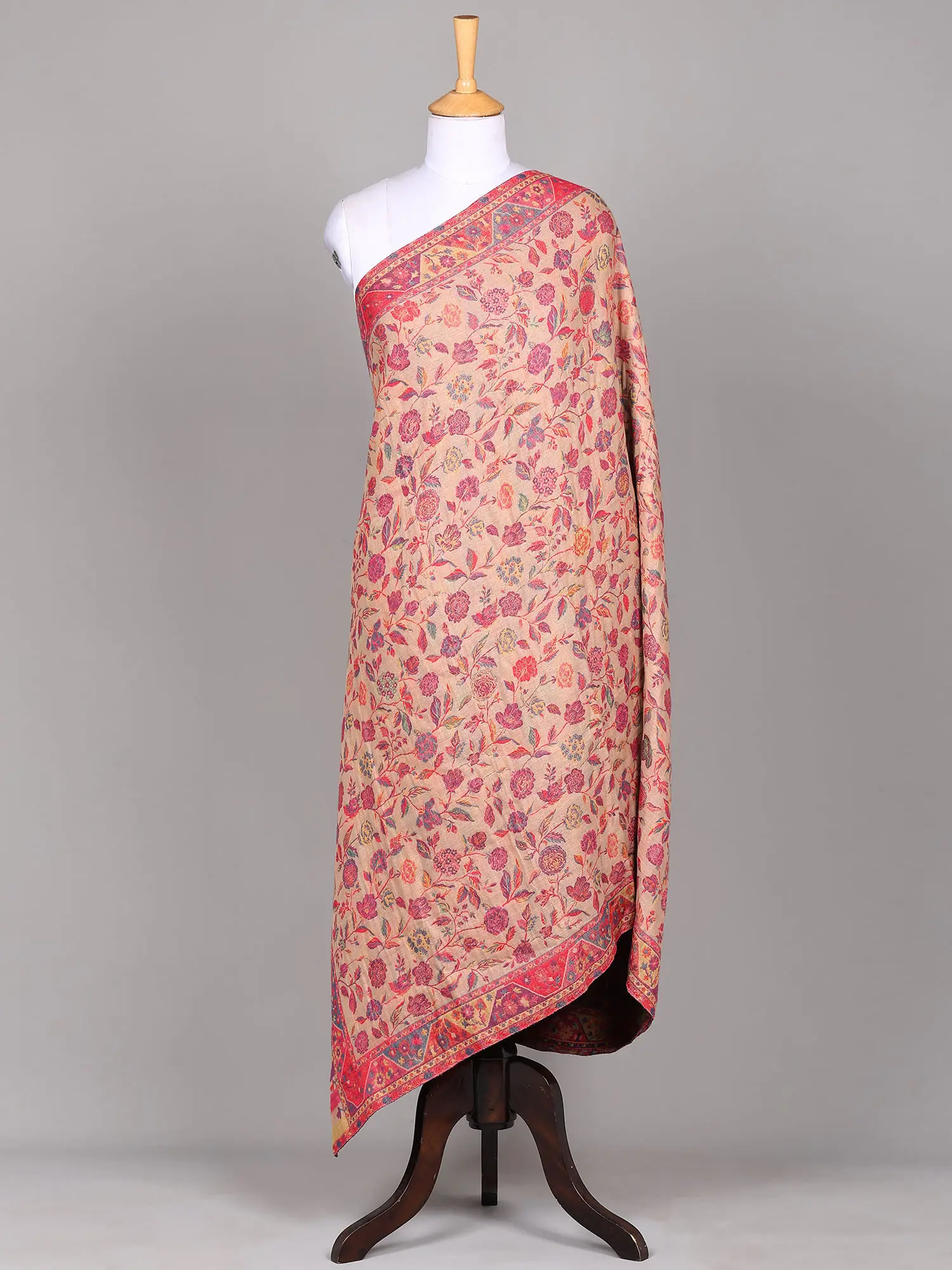 Dune-Brown Kani Pashmina Shawl From Kashmir with Kalamkari Hand Embroidery