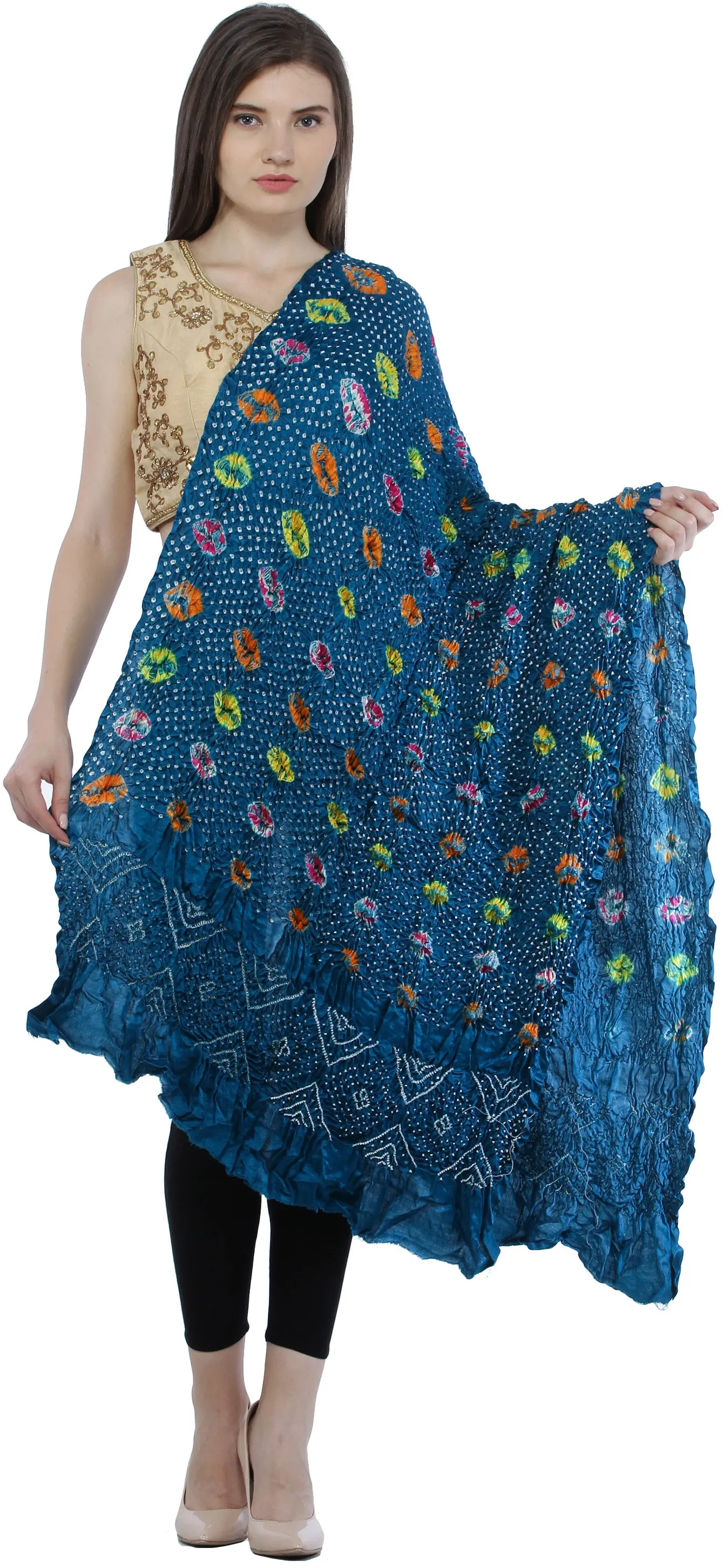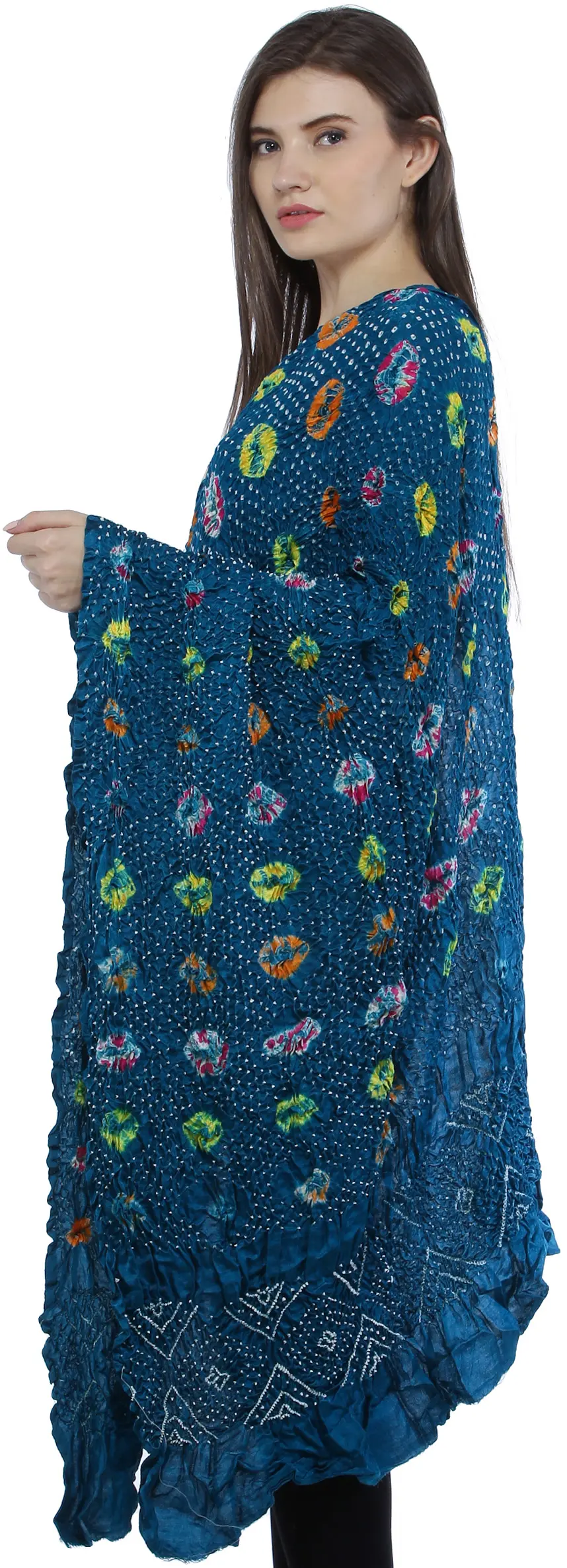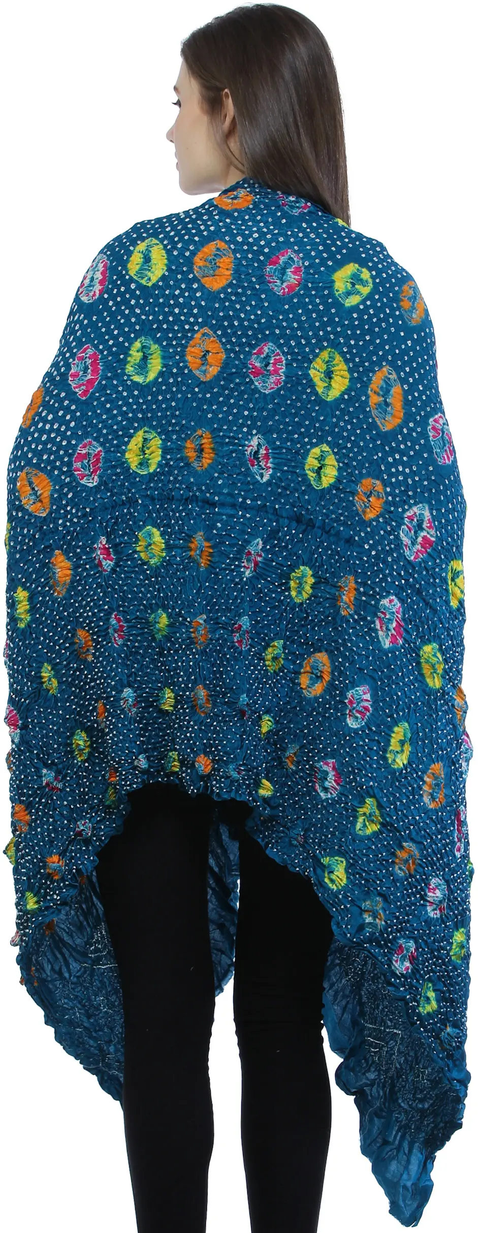Double-Shaded Elastic Long Skirt with Bandhani Print