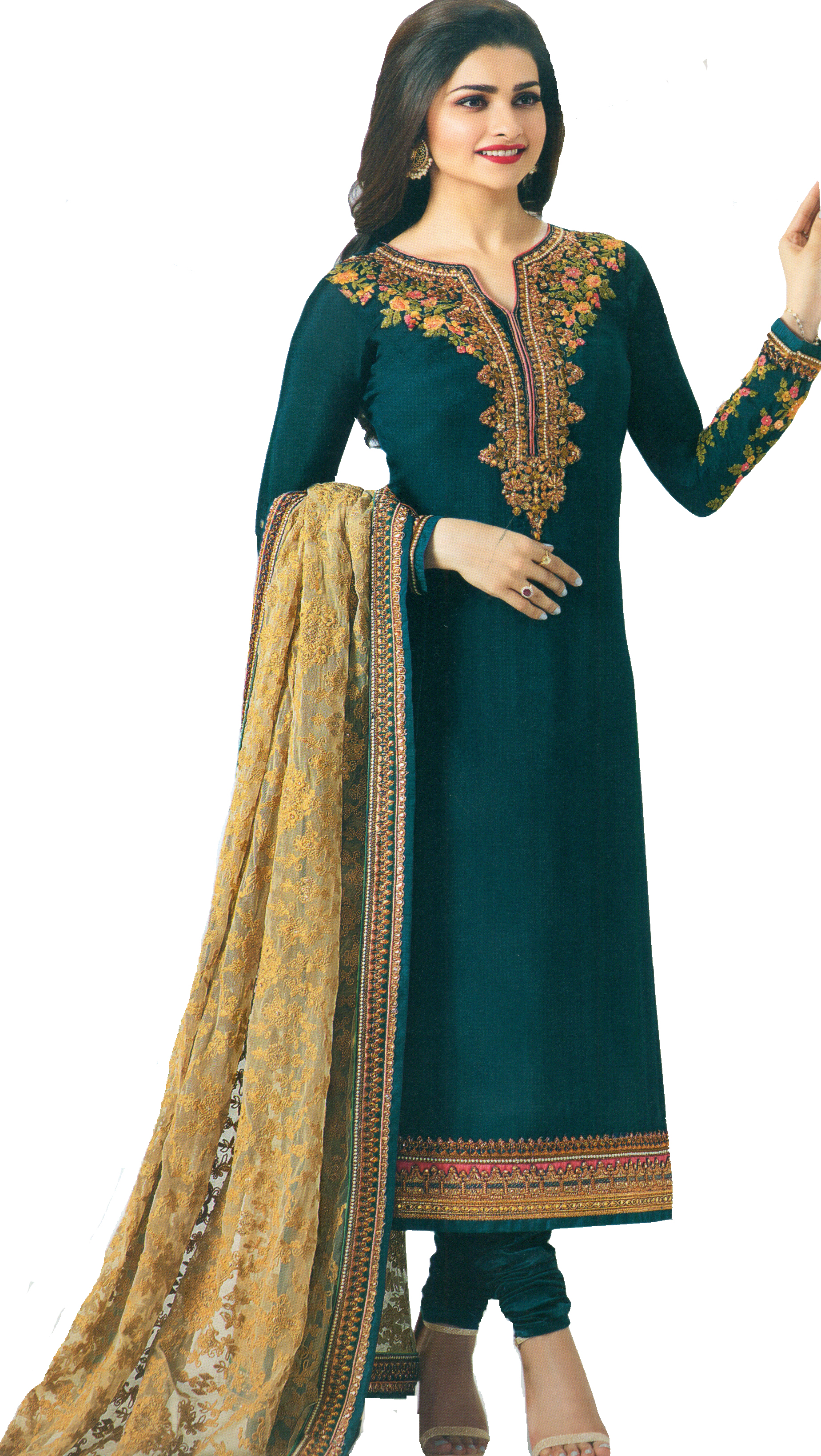Step into a world of refined style with this exquisite salwar kameez suit, designed to make you feel effortlessly graceful. The rich, deep teal hue of the georgette fabric evokes the mystery and allure of the ocean depths, creating a captivating base for intricate detailing. This ensemble is a testament to traditional craftsmanship, reimagined for the modern woman who appreciates both heritage and contemporary fashion.