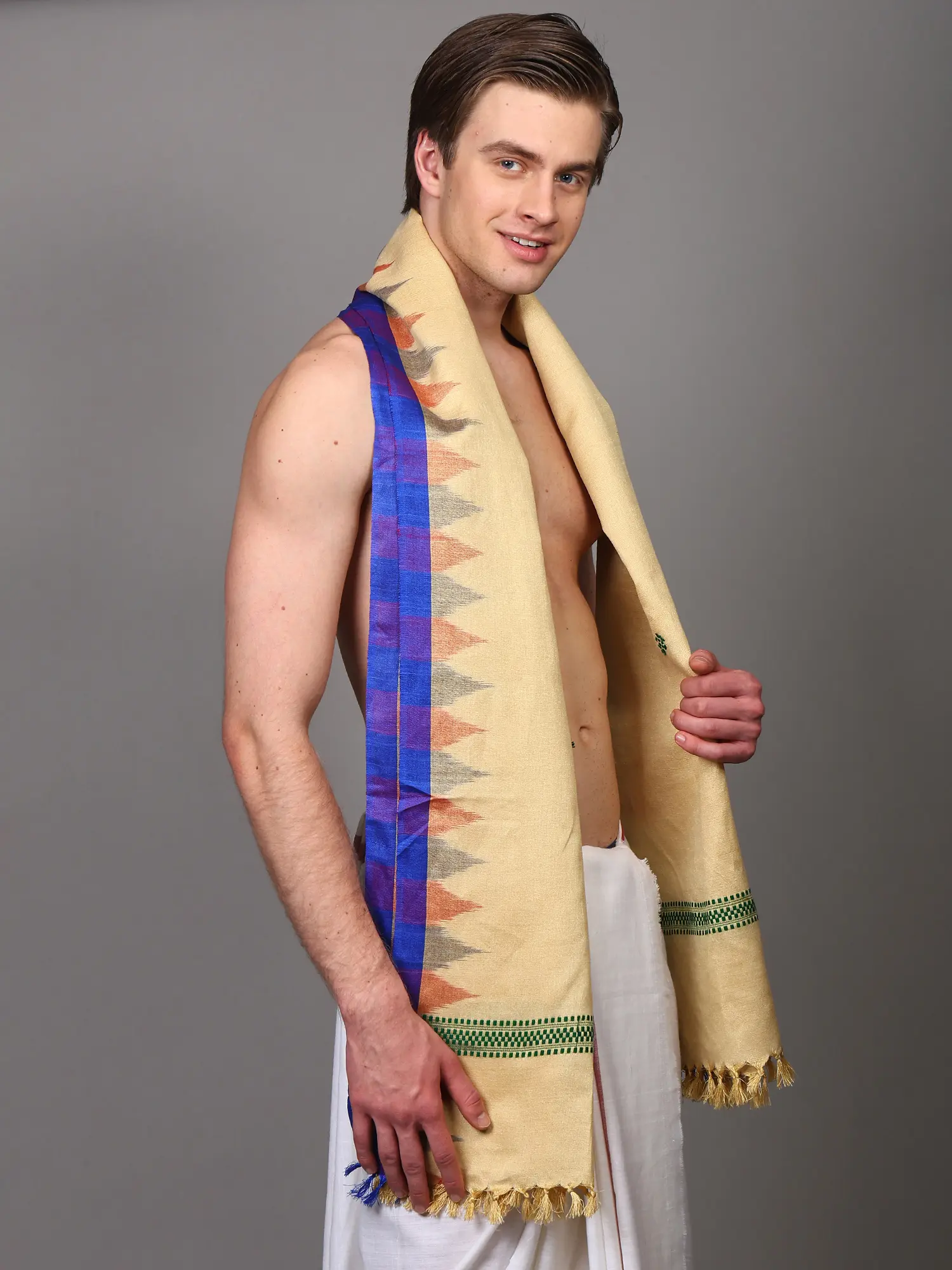 Dhoti and Angavastram set with Golden Woven Paisley on Border