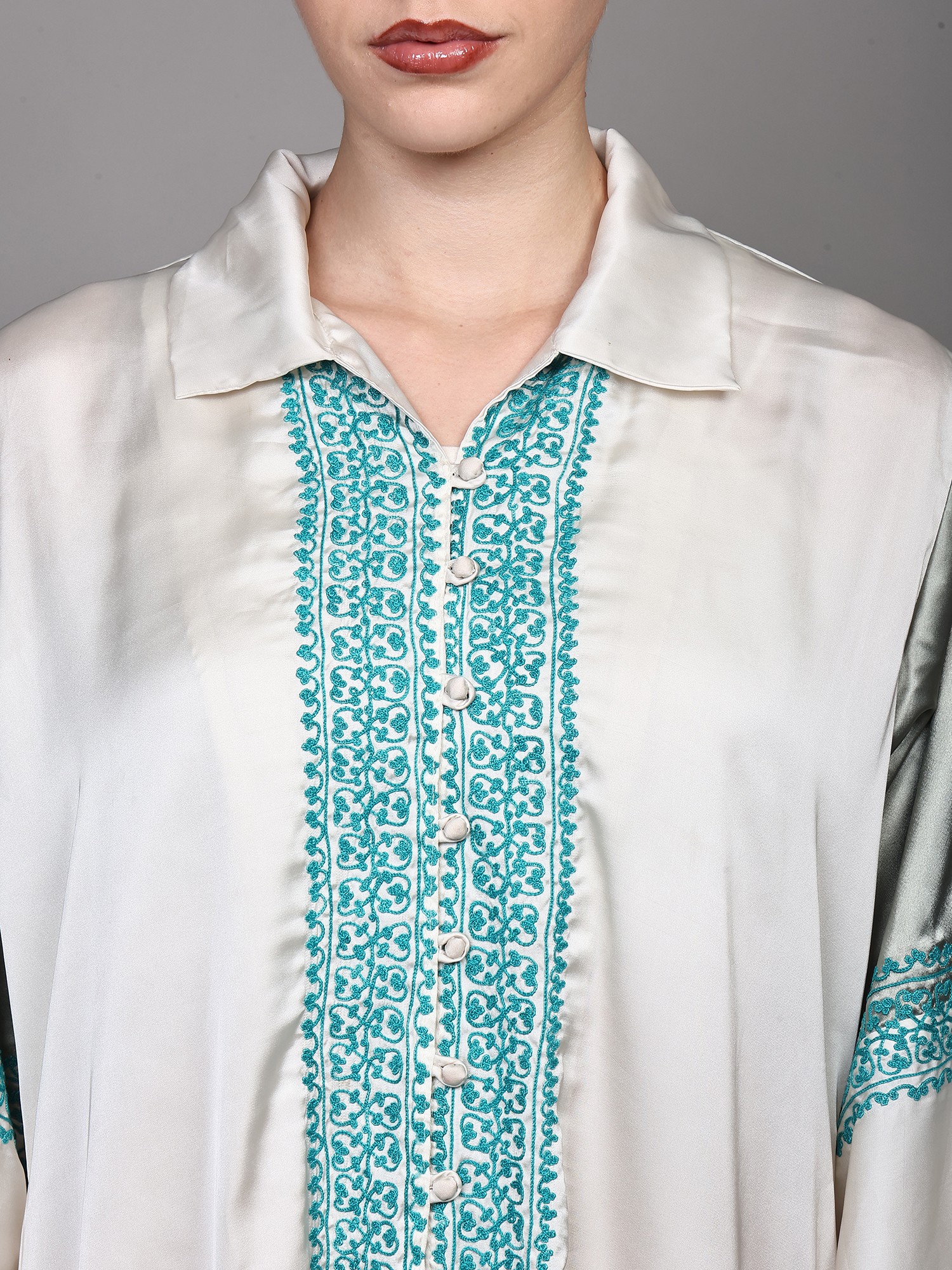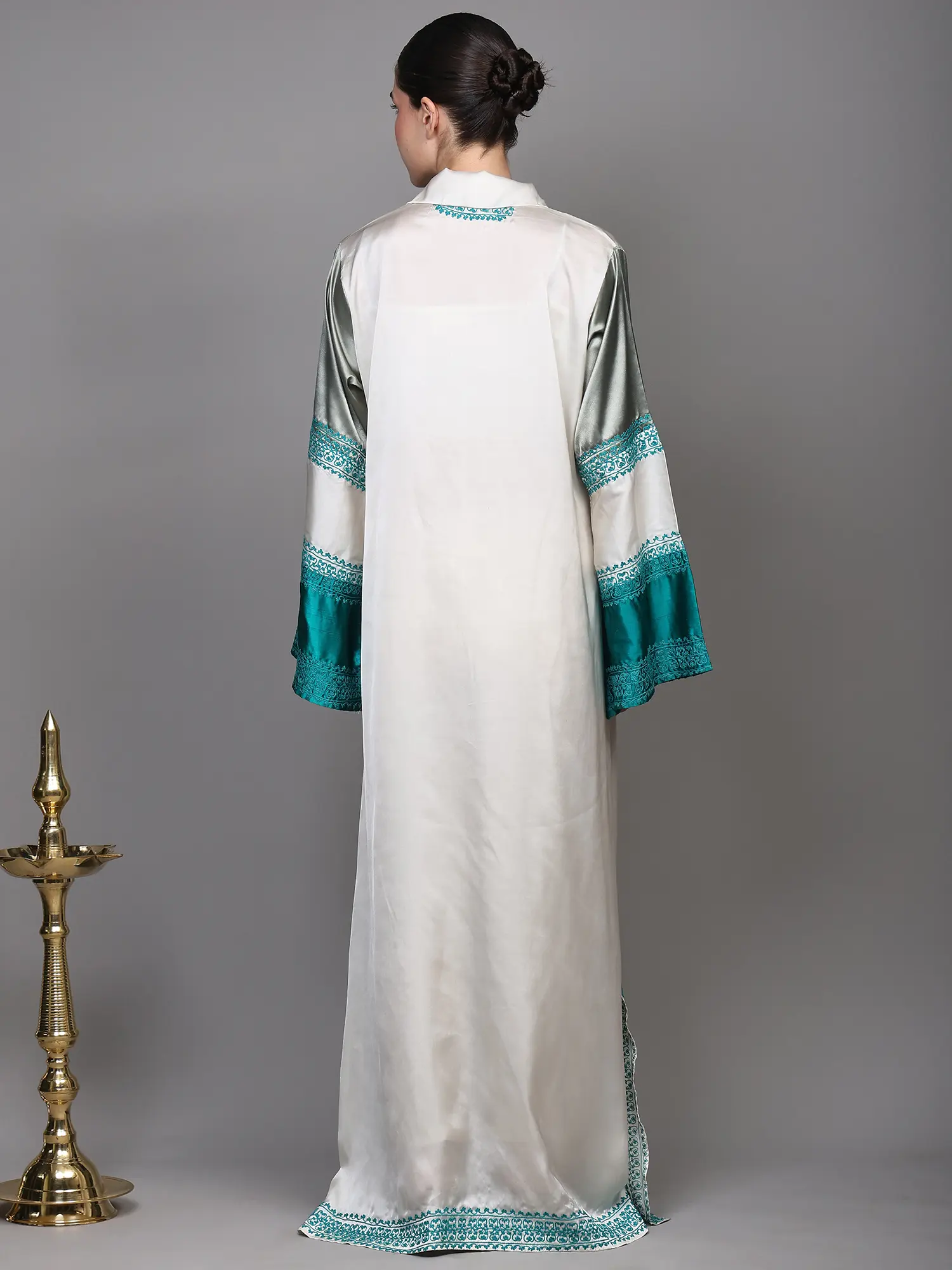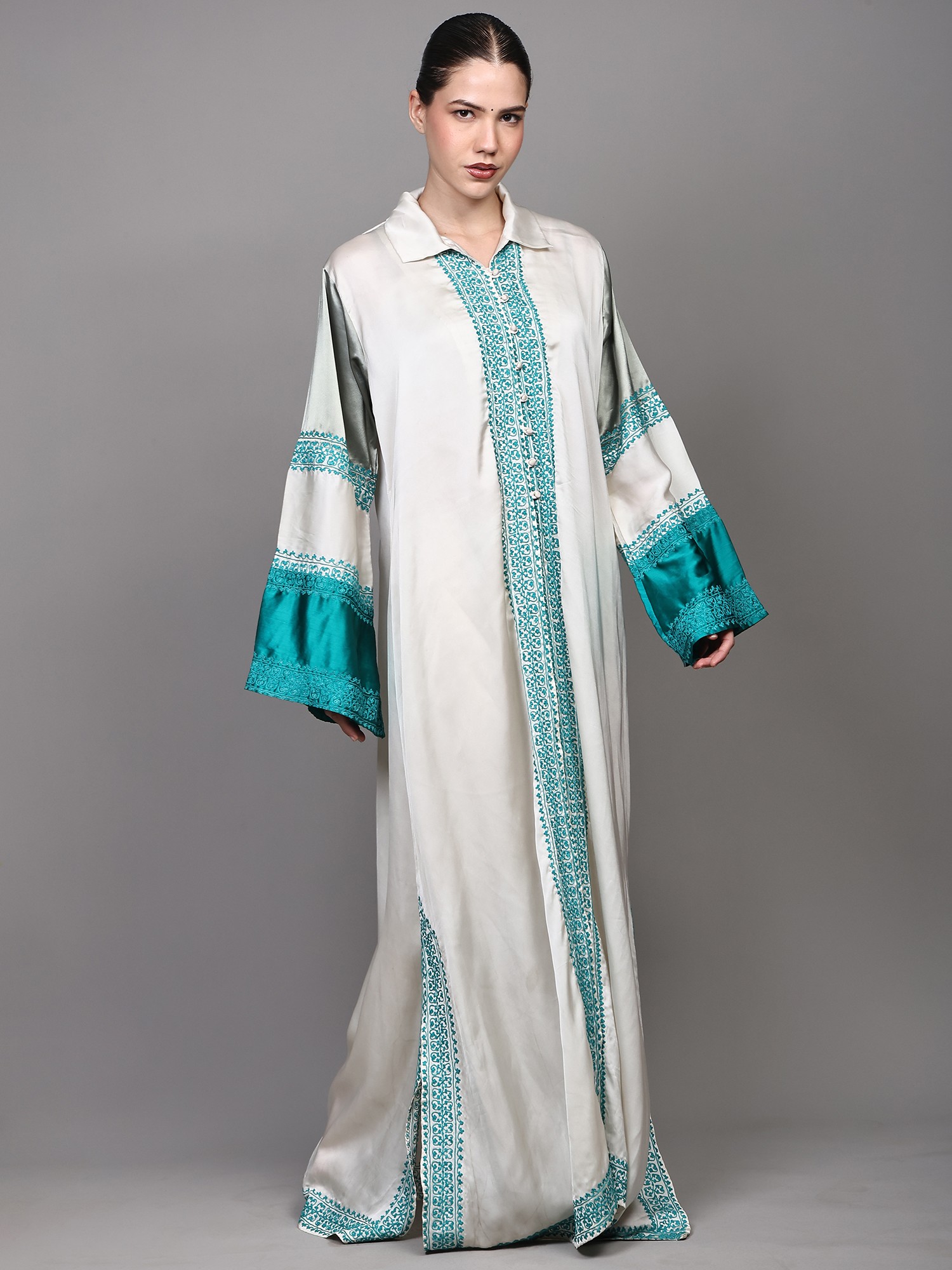 Off-White Abaya with Aari Embroidered Border from Kashmir