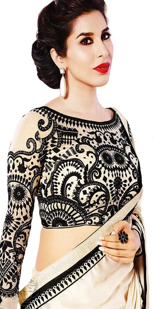 Step into a world of refined elegance with this exquisite off-white sari, a masterpiece designed to make you shine. Crafted from luxurious georgette with an alluring shimmer, this sari drapes beautifully, exuding grace and sophistication with every movement. The subtle sheen of the georgette fabric catches the light, creating a captivating radiance that is both timeless and modern.
