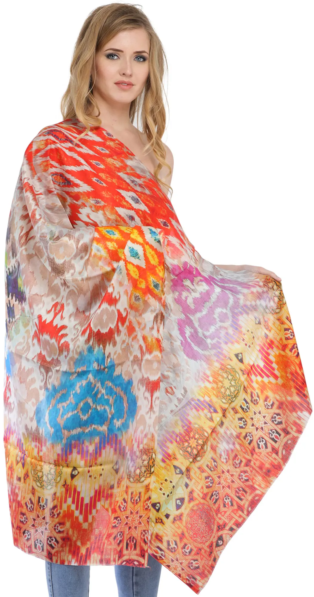 True-Red Silk Saree with Bagru Block Printed Floral Bootis from Madhya Pradesh