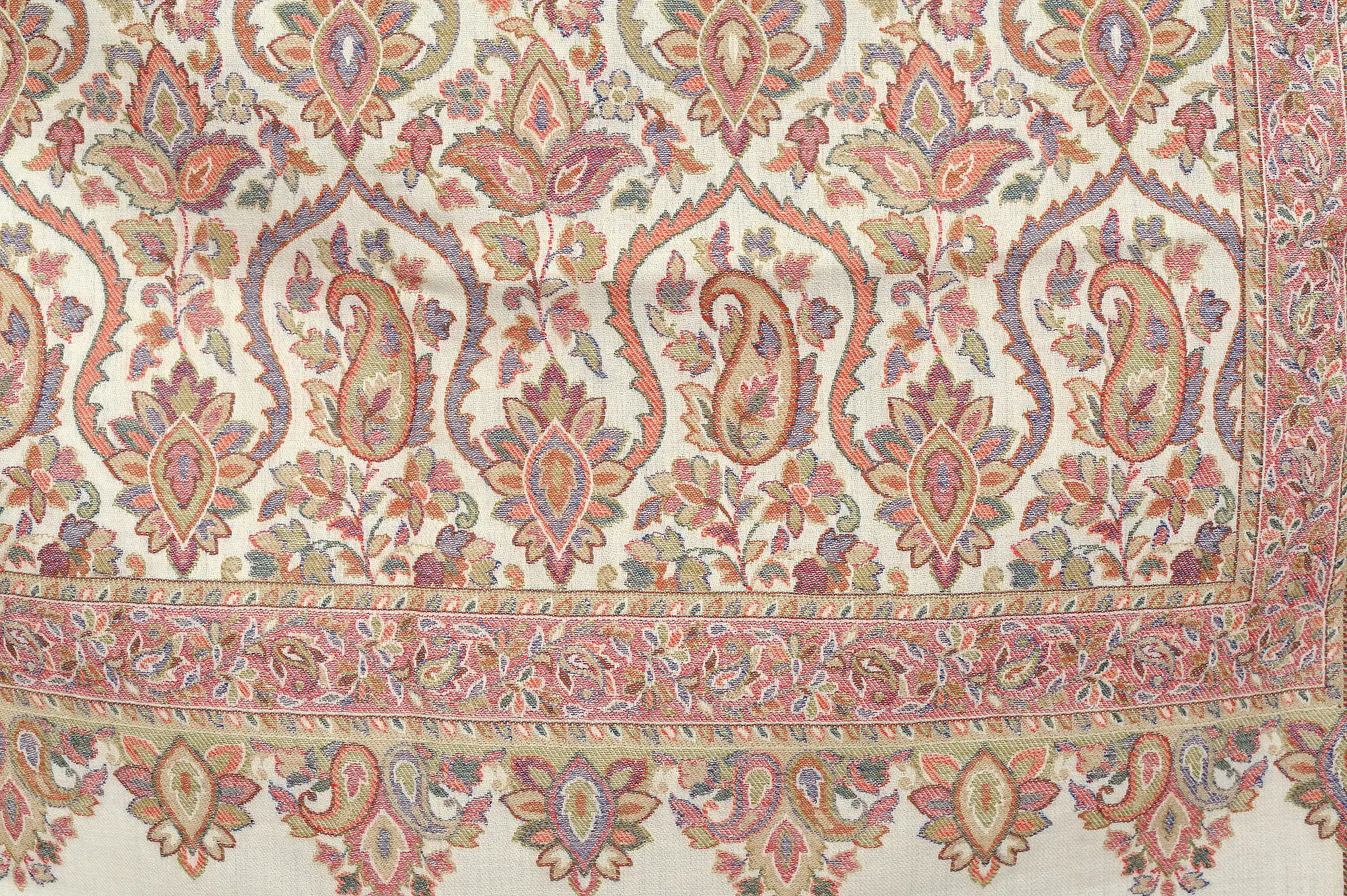 Cannoli-Cream Kani Jamawar Shawl with Woven Flowers and Paiselys All-Over