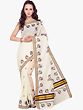 Ivory Kasavu Puja Sari from Kerala with Golden Border