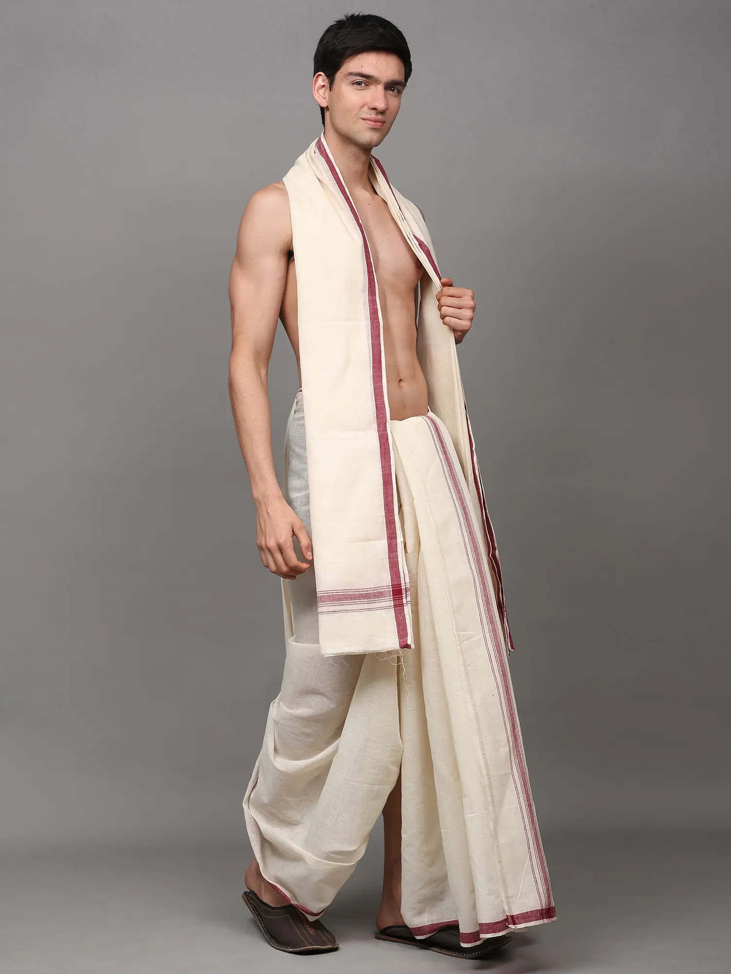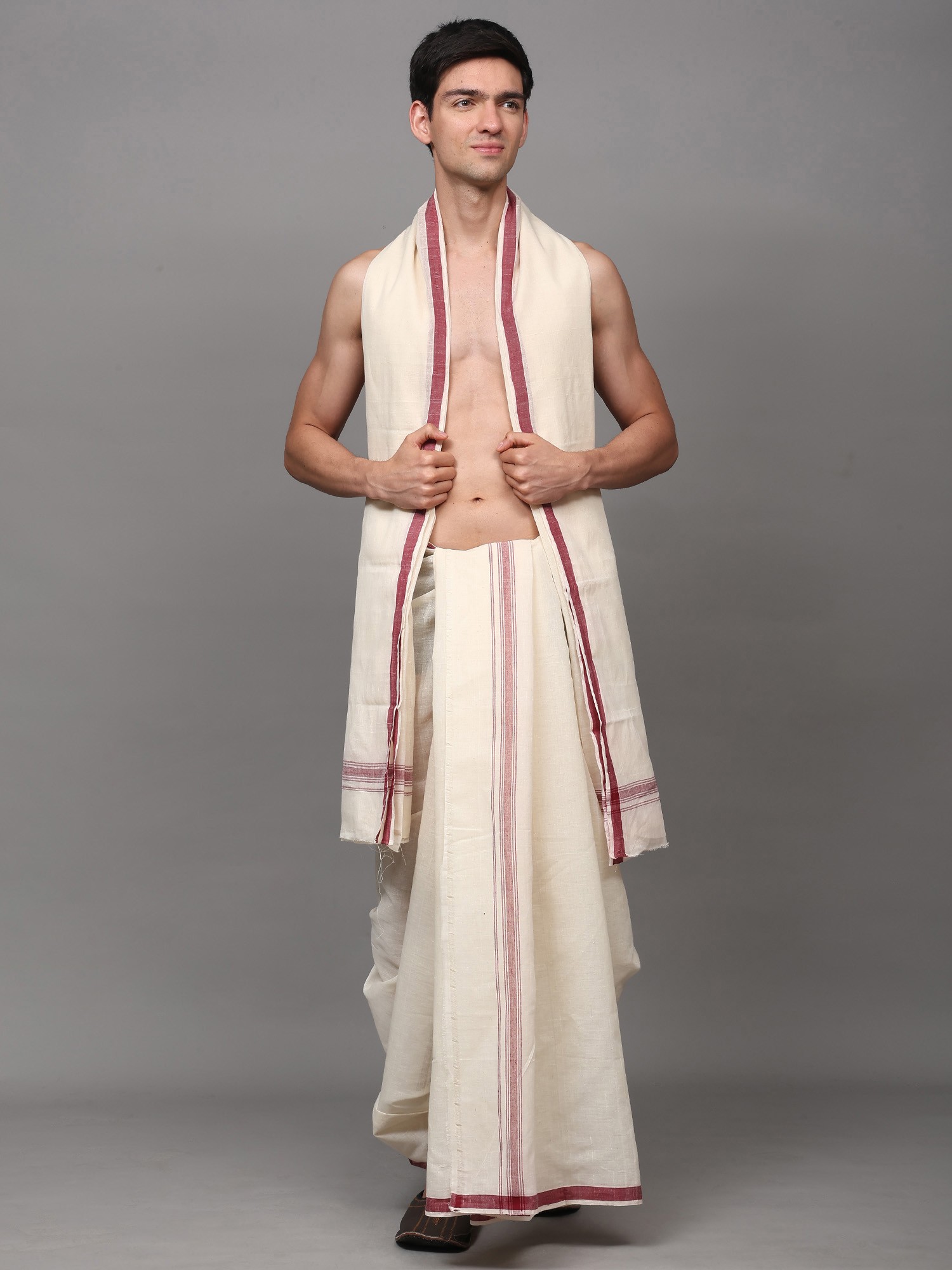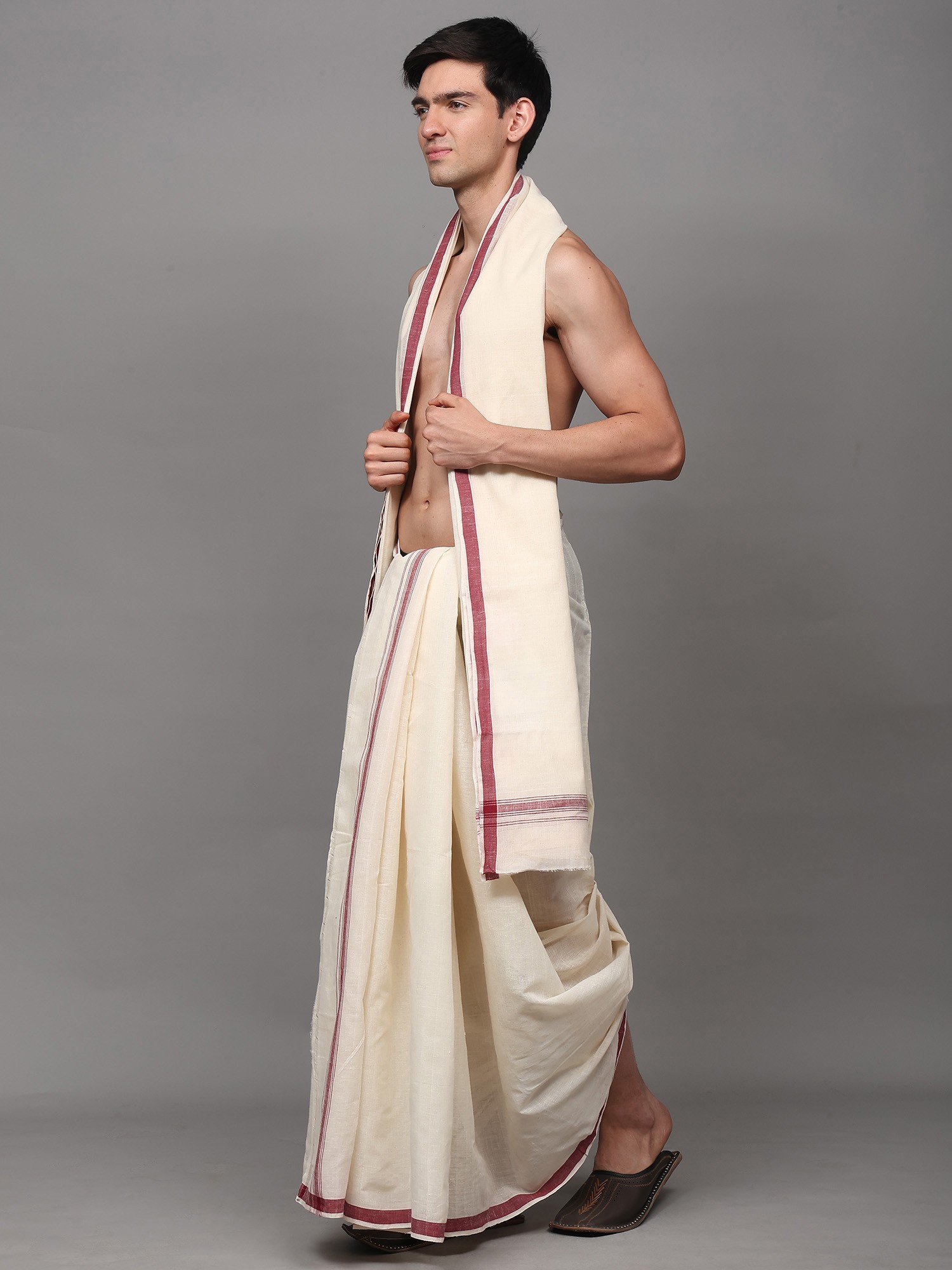 Dhoti and Angavastram Set with Woven Border