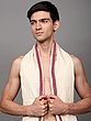 Plain Dhoti and Angavastram Set with Striped Border