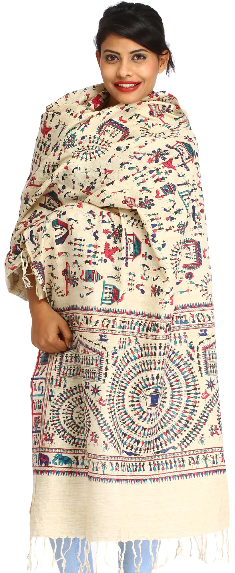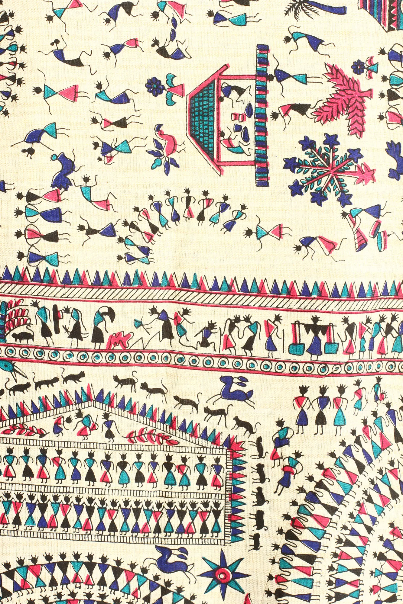 Khadi Cotton Fabric with Printed Madhubani Procession