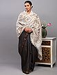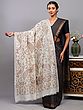 Pearled-Ivory Pure Pashmina Shawl from Kashmir with Sozni Floral Hand-Embroidery All-Over