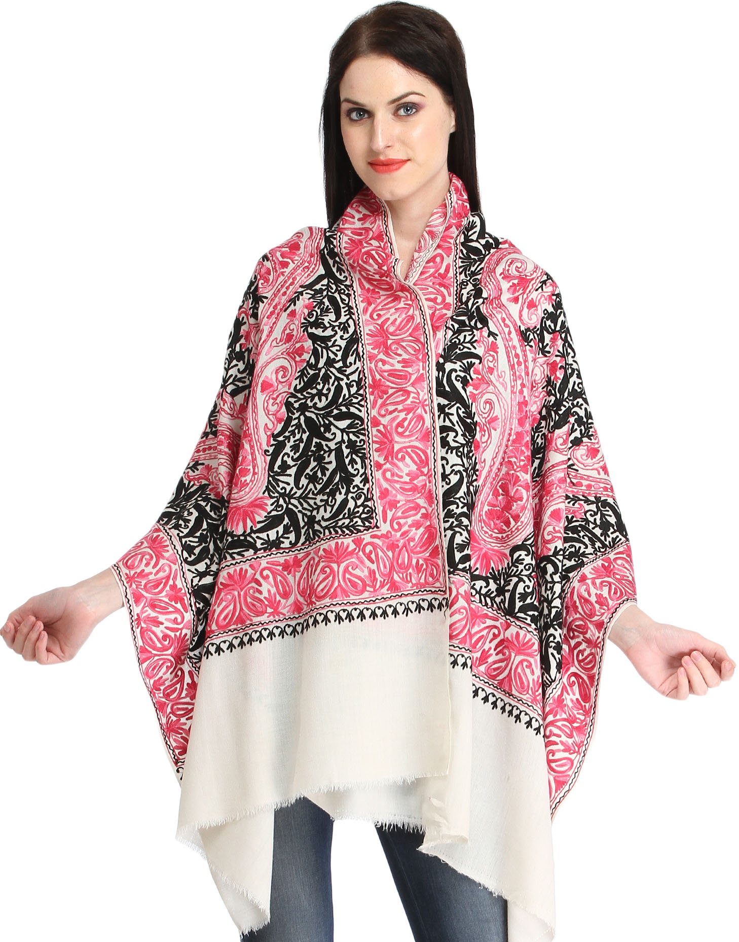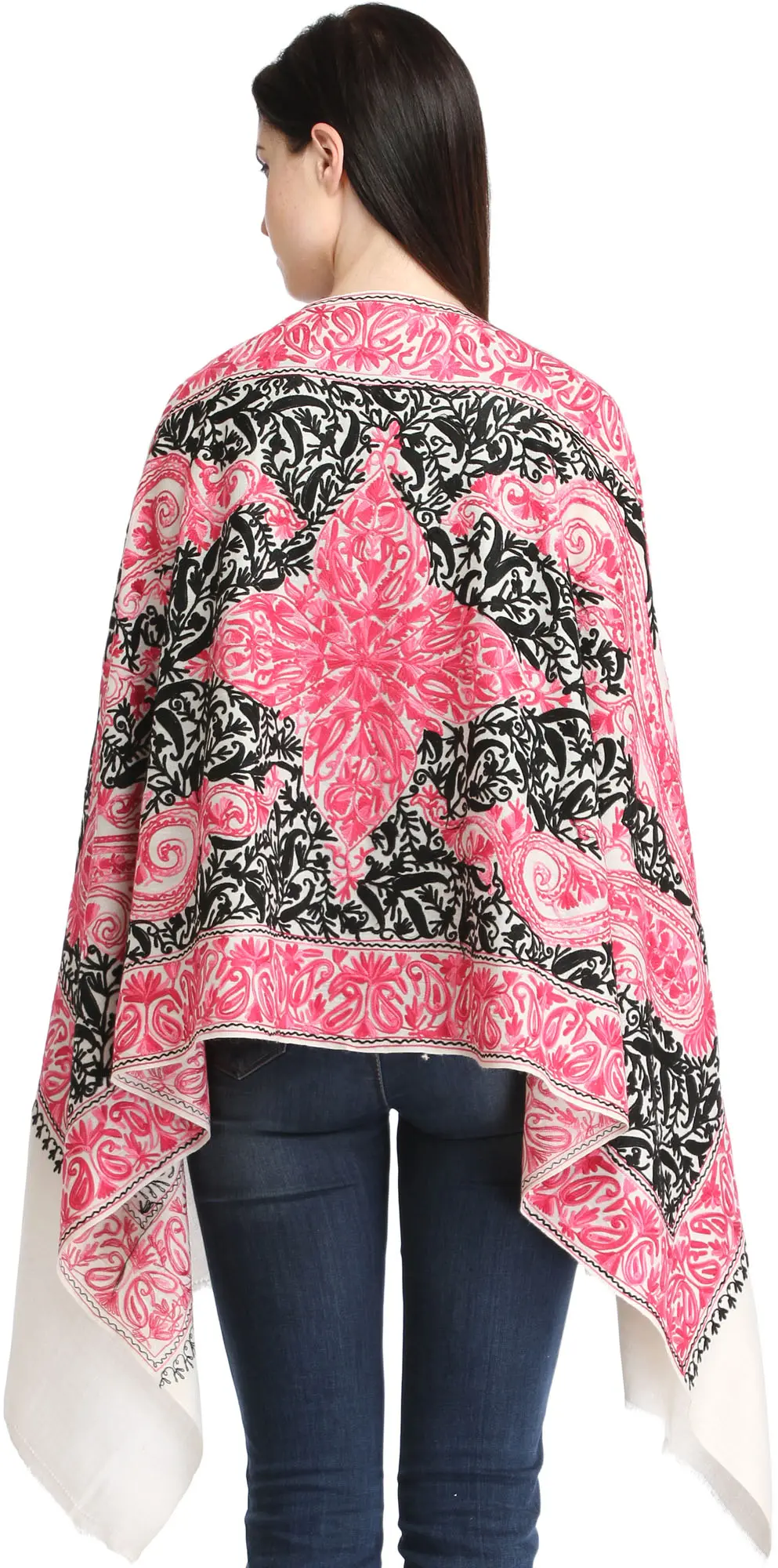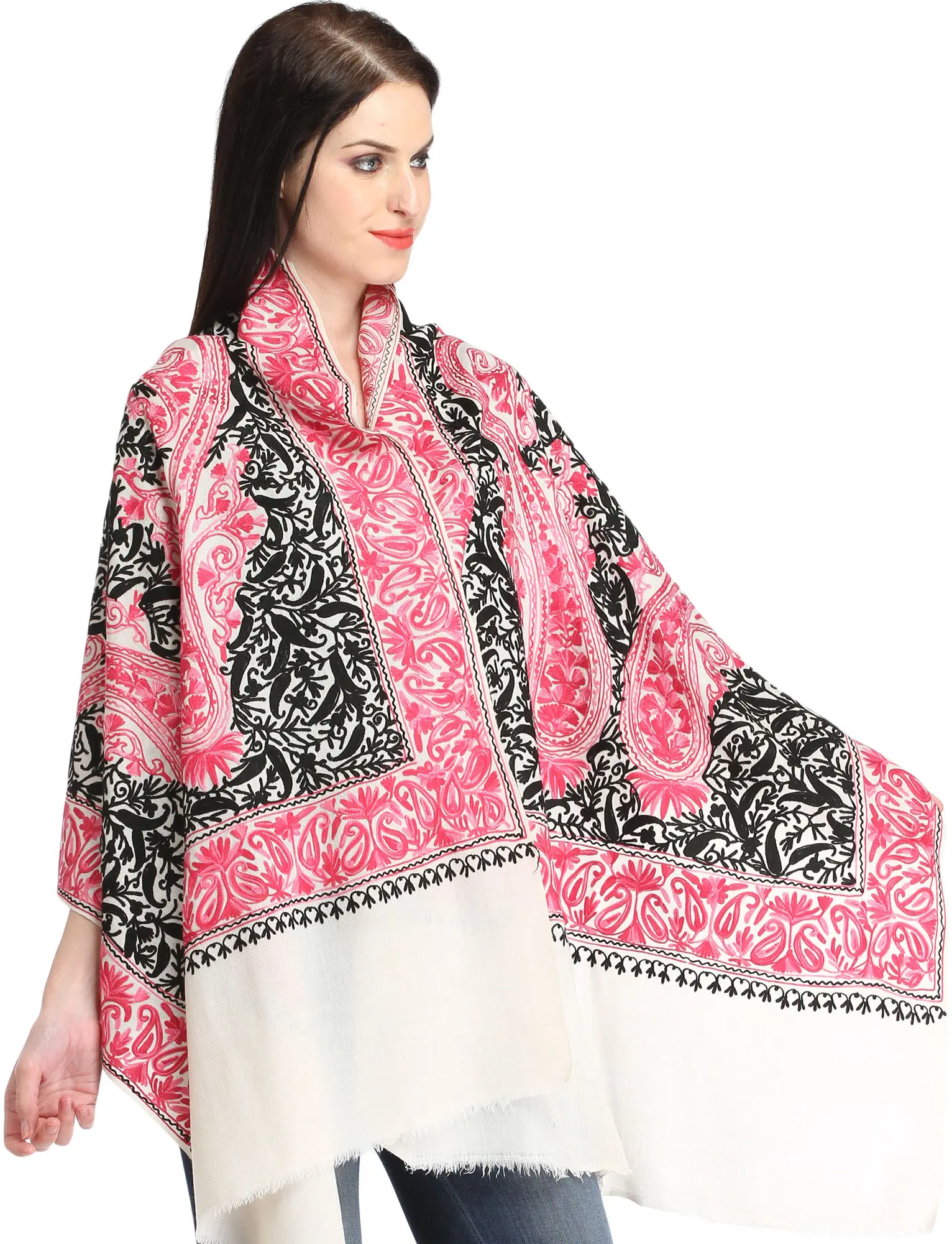 Black-Beauty Short Kurti From Kashmir With Flowers Aari Embroidery In Multicolored Thread
