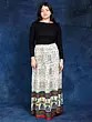 Dancing couples entwine amidst the fabric, their graceful movements immortalised in eternal artistry. This skirt, made from rayon, represents cultural respect and sartorial sophistication. Embrace its allure, since it goes beyond practicality, becoming a medium for poetic expression.