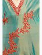 Agate-Green Short Kaftan from Kashmir with Aari Hand-Embroidered Paisleys