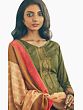 Olive-Brown Long Trouser and Kameez Suit with Multicolored Embroidery and Digital Printed Dupatta