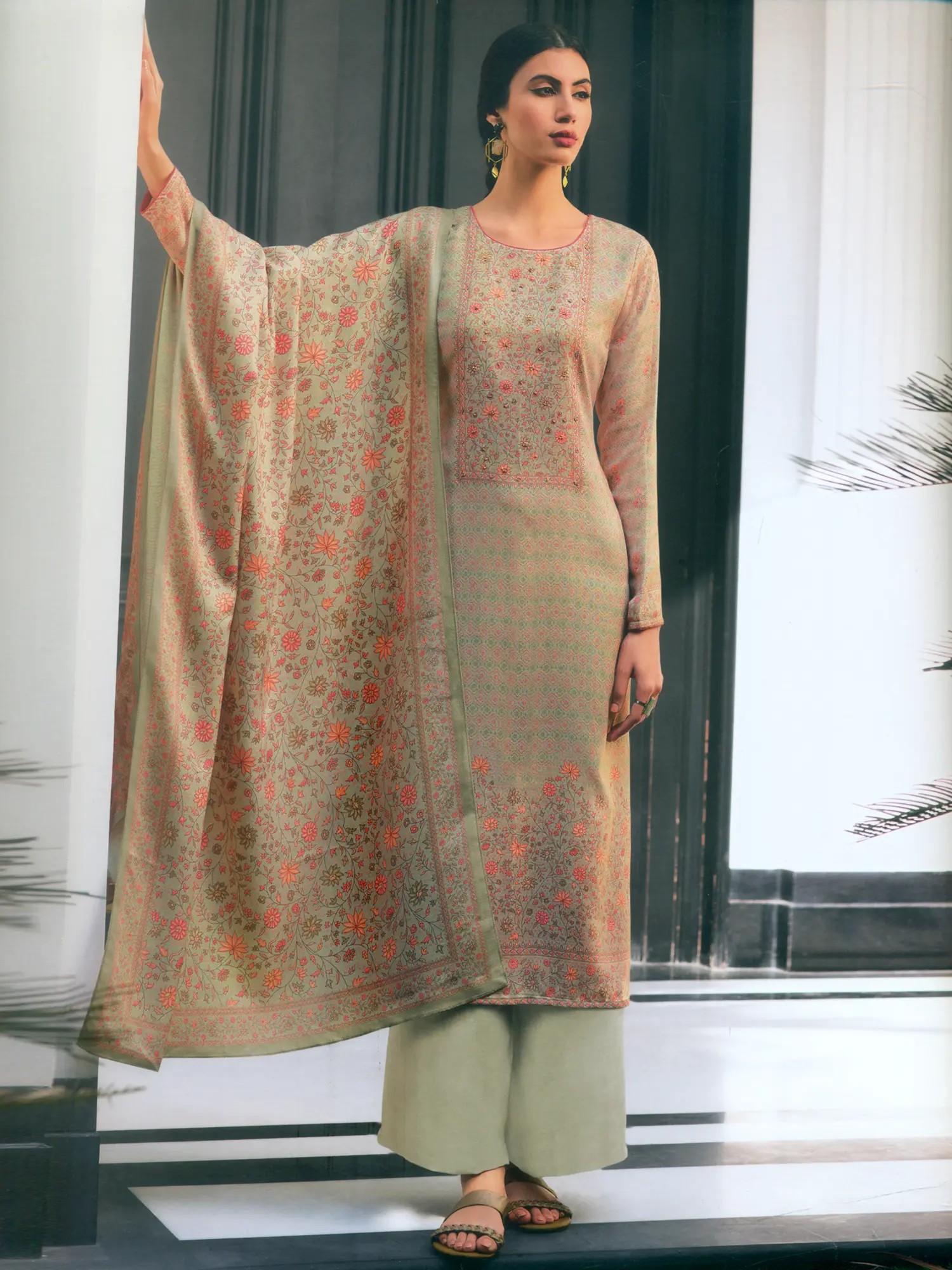 Brazilian-Sand Poly Wool Kani Jamawar Salwar Suit with Dupatta
