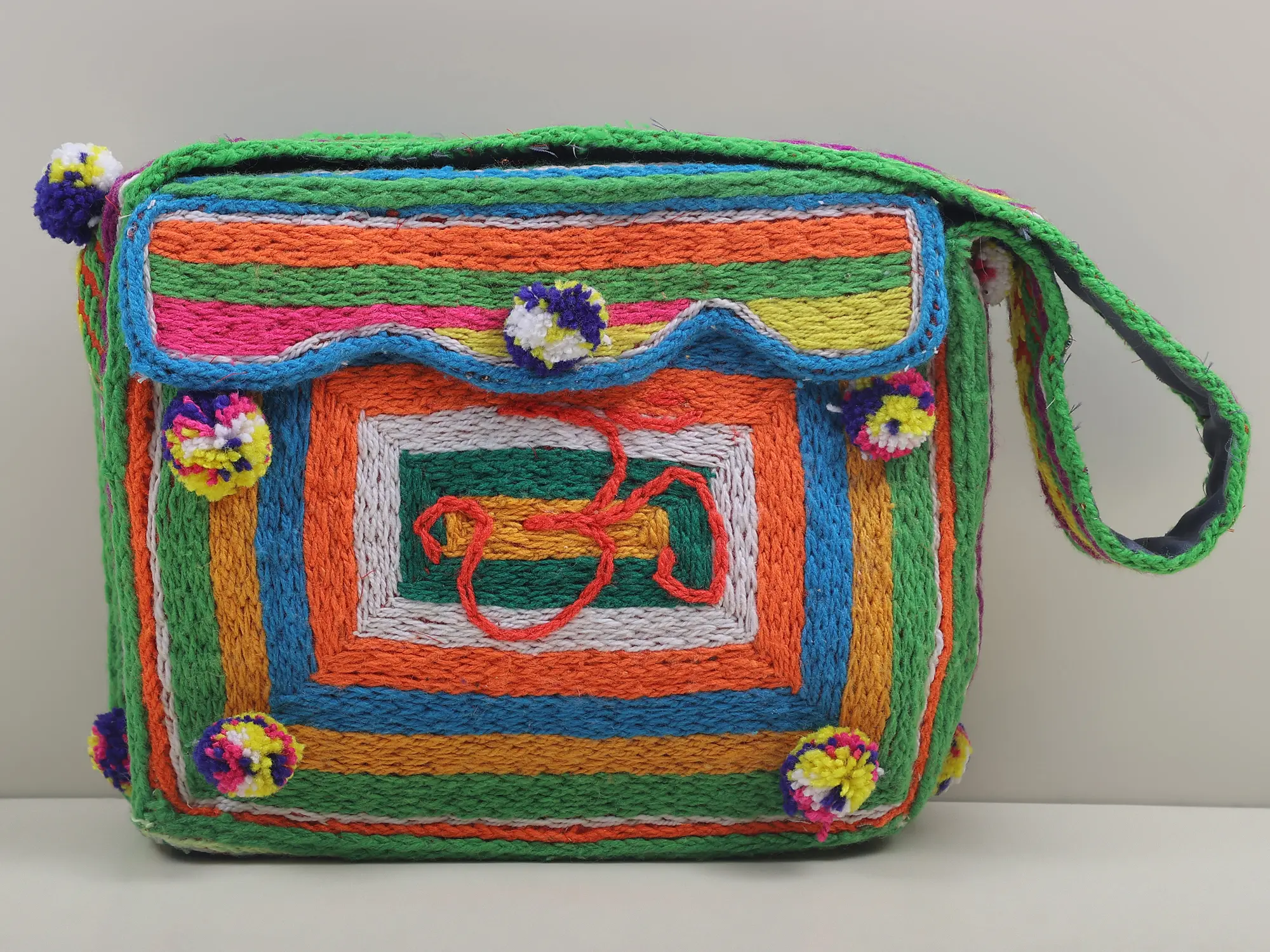 This beautiful bag is a celestial fusion of spirituality and style. Crafted with ethereal precision, this bag has been adorned with crocheted wool and meticulously prepared by a revered “Sadhu”, adding a touch of divine craftsmanship. The sacred symbol of “OM” or “AUM” is woven into the fabric, infusing positive energy into every thread. Embrace the purity of this accessory, a testament to ancient traditions and a spiritual journey from the heart of Haridwar. Upgrade your style with this creation that not only carries your belongings but also resonates with the serenity of the holy city. Engage yourself in the essence of sacred fashion, where heritage meets contemporary beauty.