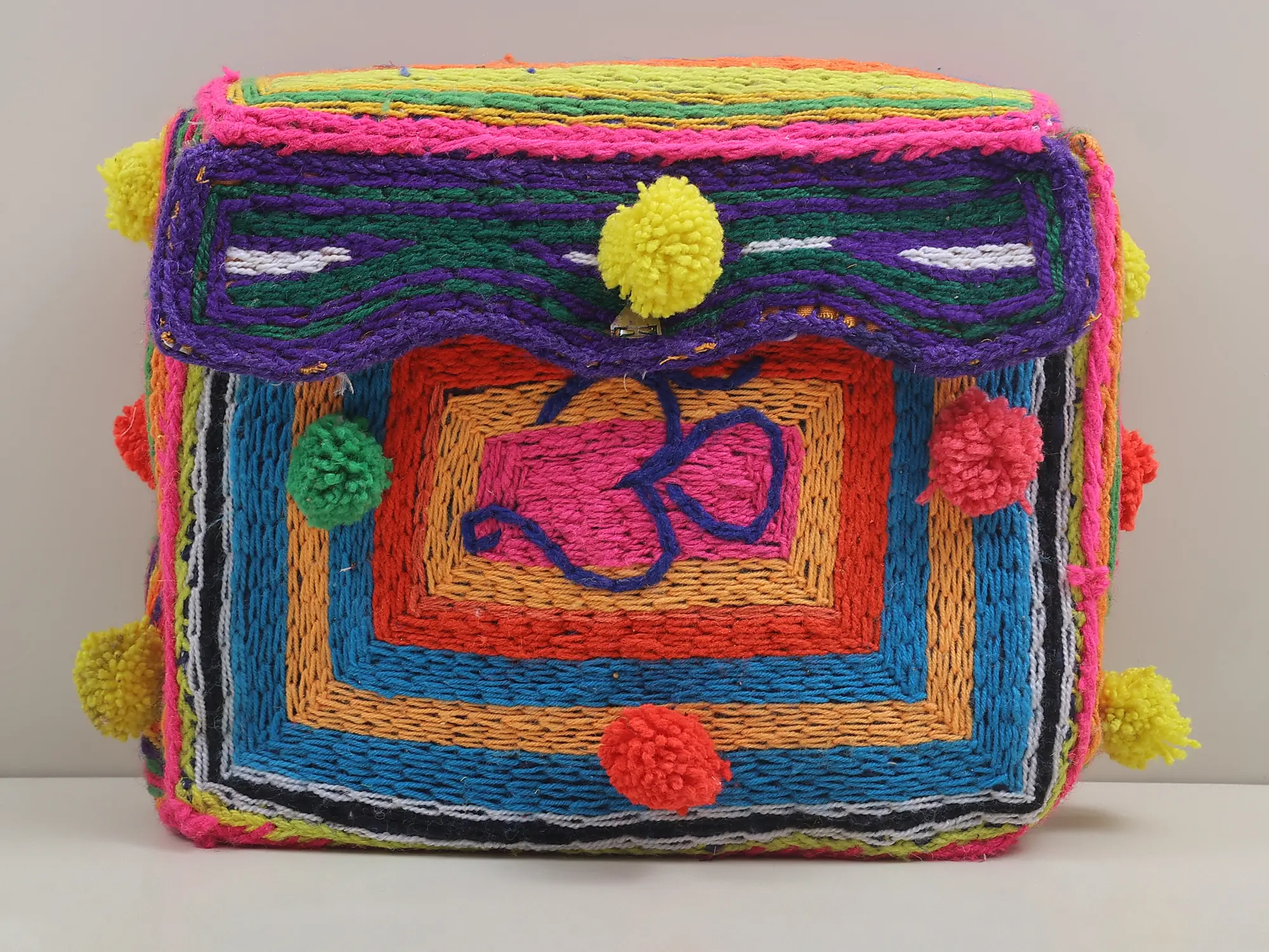Immerse yourself in the vibrant spirit of Haridwar with this exquisite Om shoulder bag, a testament to traditional craftsmanship and spiritual significance. Each bag is a unique piece of art, meticulously handcrafted from pure wool, carrying with it the dedication and devotion of its maker. This isn't just an accessory; it's a wearable story, infused with the blessings and serenity of one of India's holiest cities.