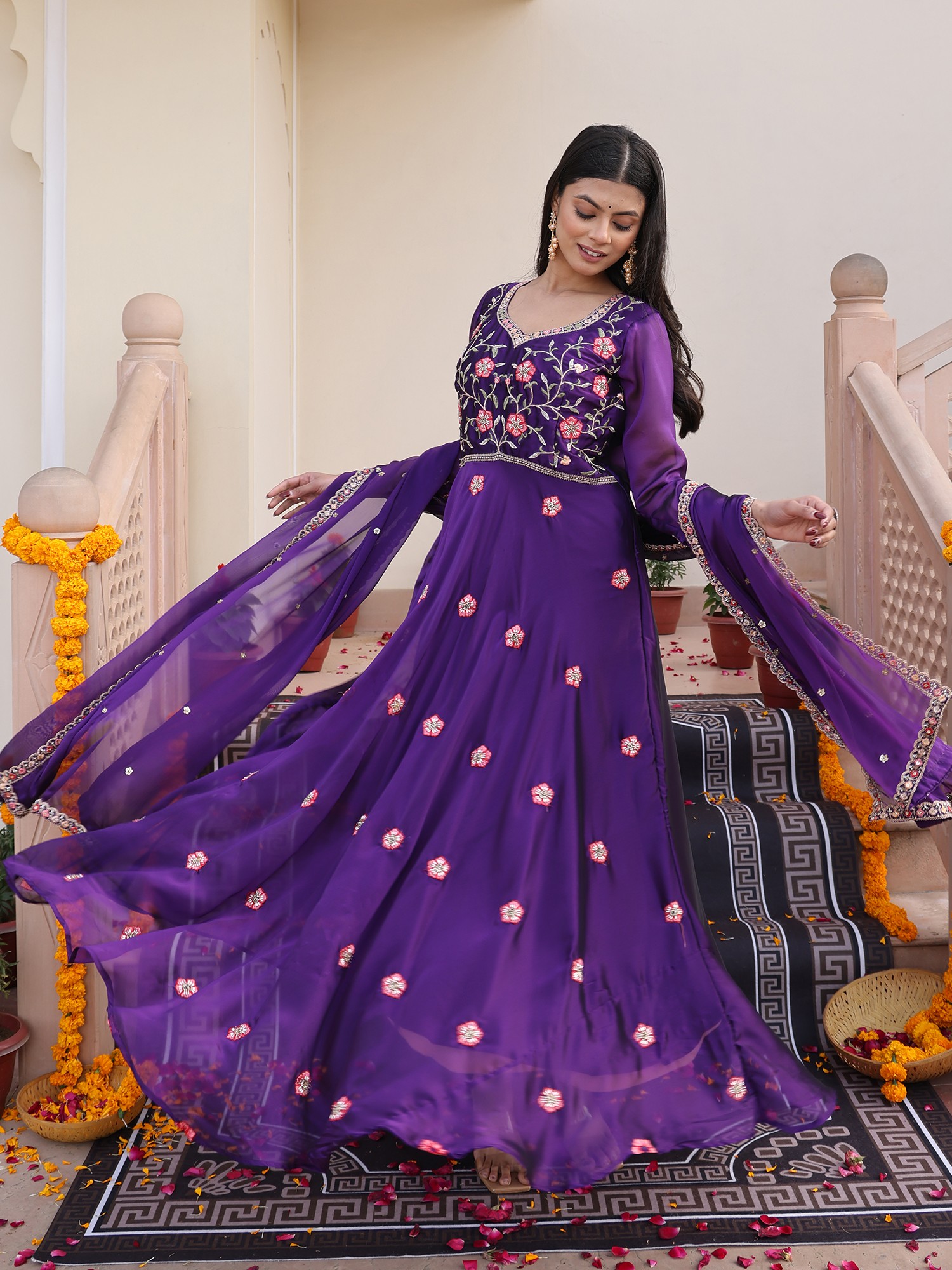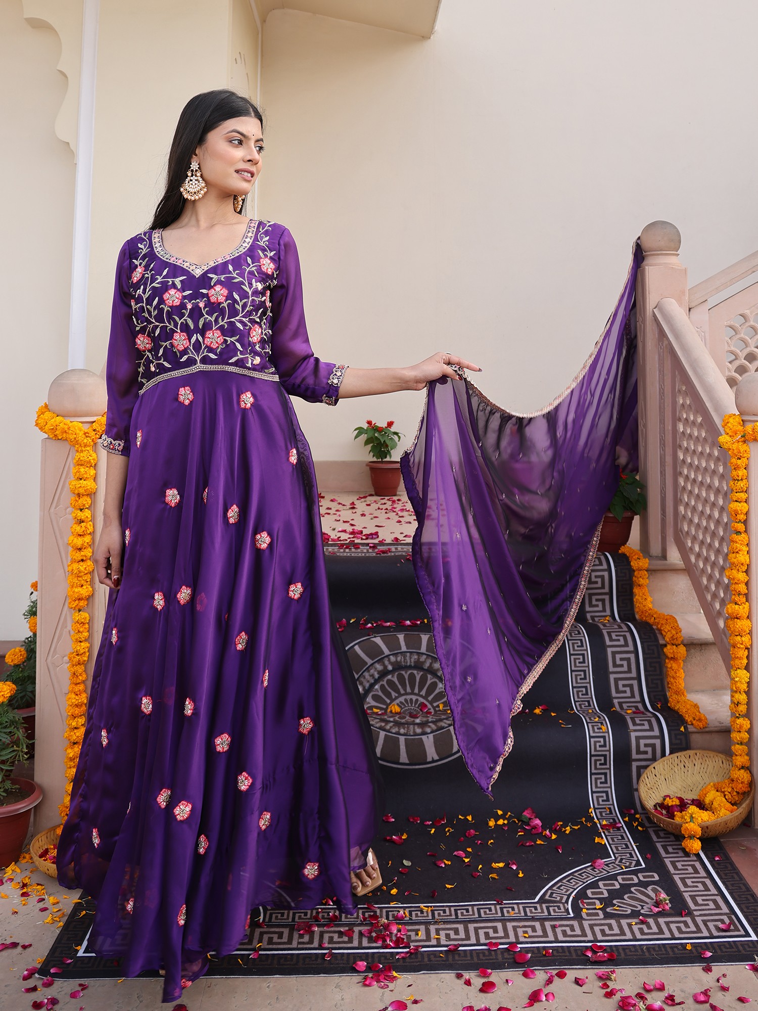 Opulent Rangoli Silk Anarkali Suit With Dupatta And Crepe Bottom With Intricate Beads Embroidery For Wedding Functions Parties