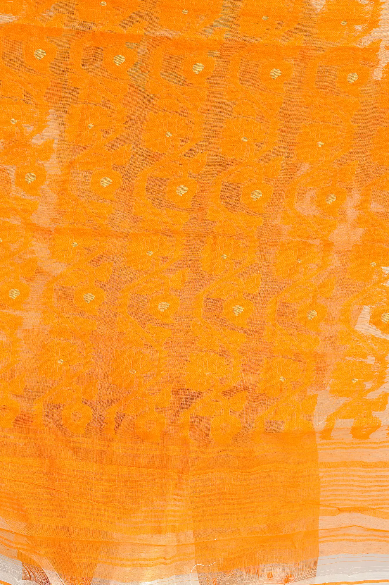 Orange and Ivory Jamdani Sari from Bengal with Woven Bootis