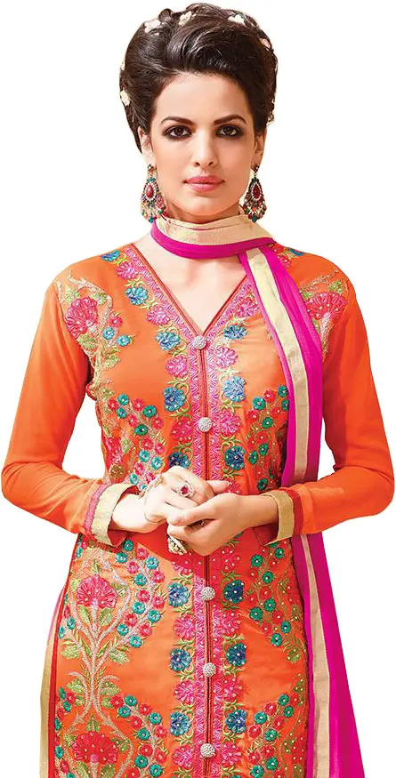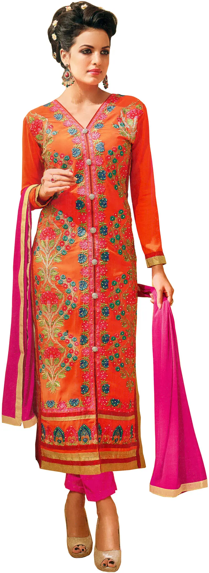True-Red Malaika Long Choodidaar Kameez Suit with Floral Embroidery and Crystals