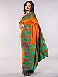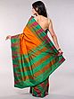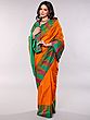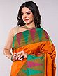 Tangerine-Tango Temple Border Saree with Zari woven Motifs and Striped Anchal from Chennai
