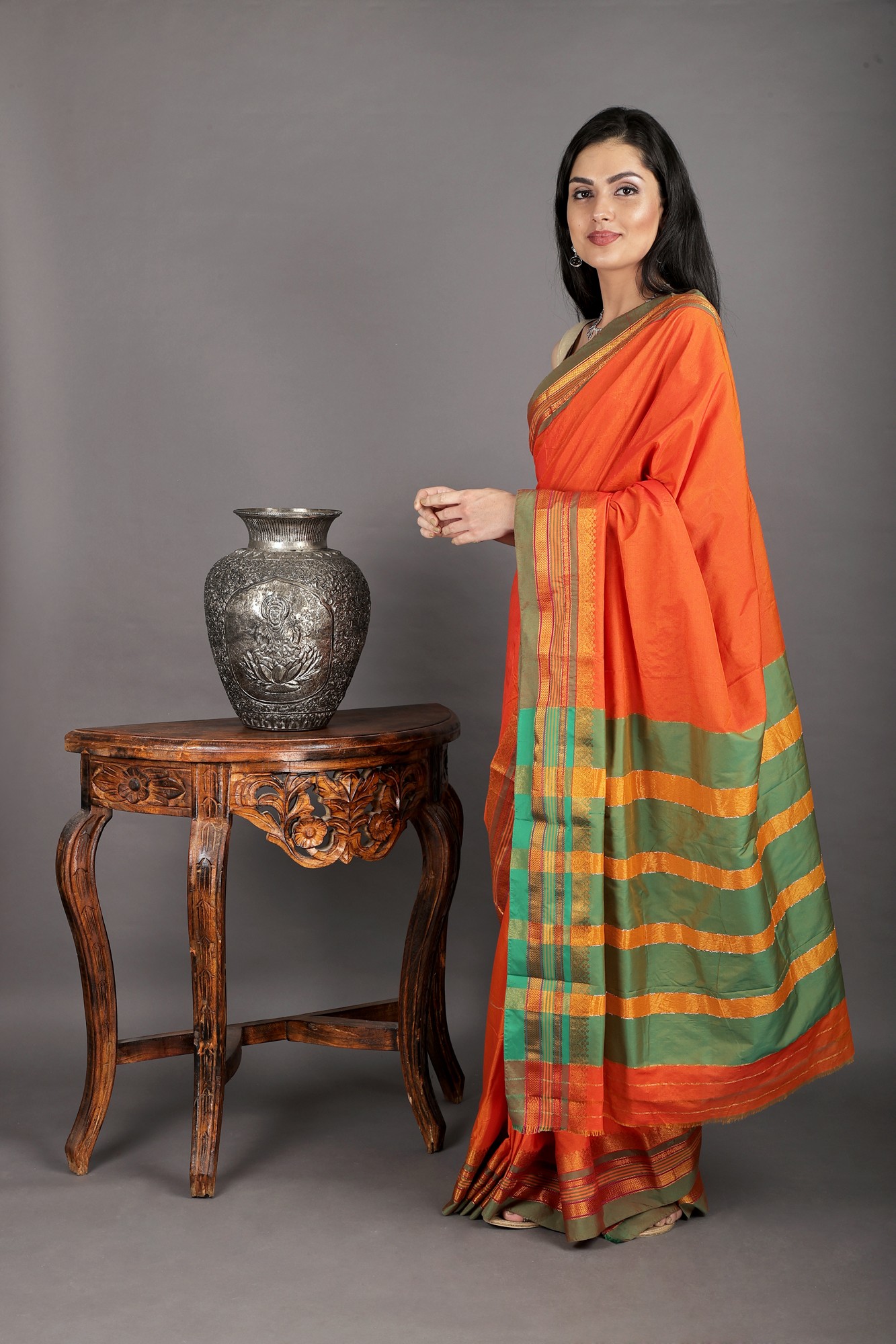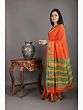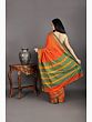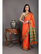 Golden-Orange Gajam Temple Border Pure Silk Saree from Kumbakonam with Golden Thread Work and Dual Colored Border
