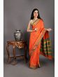 Orange-Peel Dual Shade Art Silk Patchwork Saree - Handcrafted by Adivasi Women of Madhya Pradesh