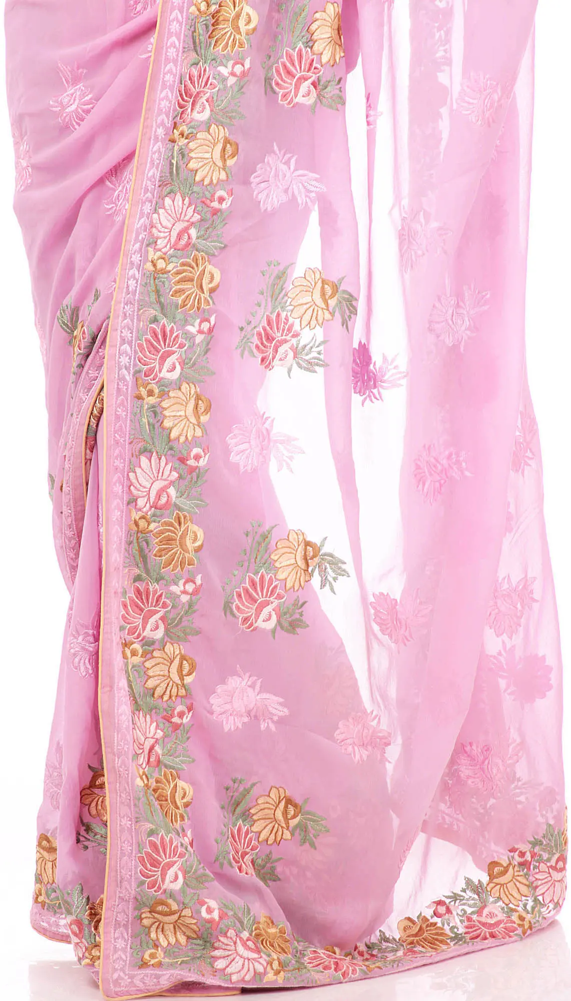 Orchid Sari with Parsi Embroidered Flowers All-Over