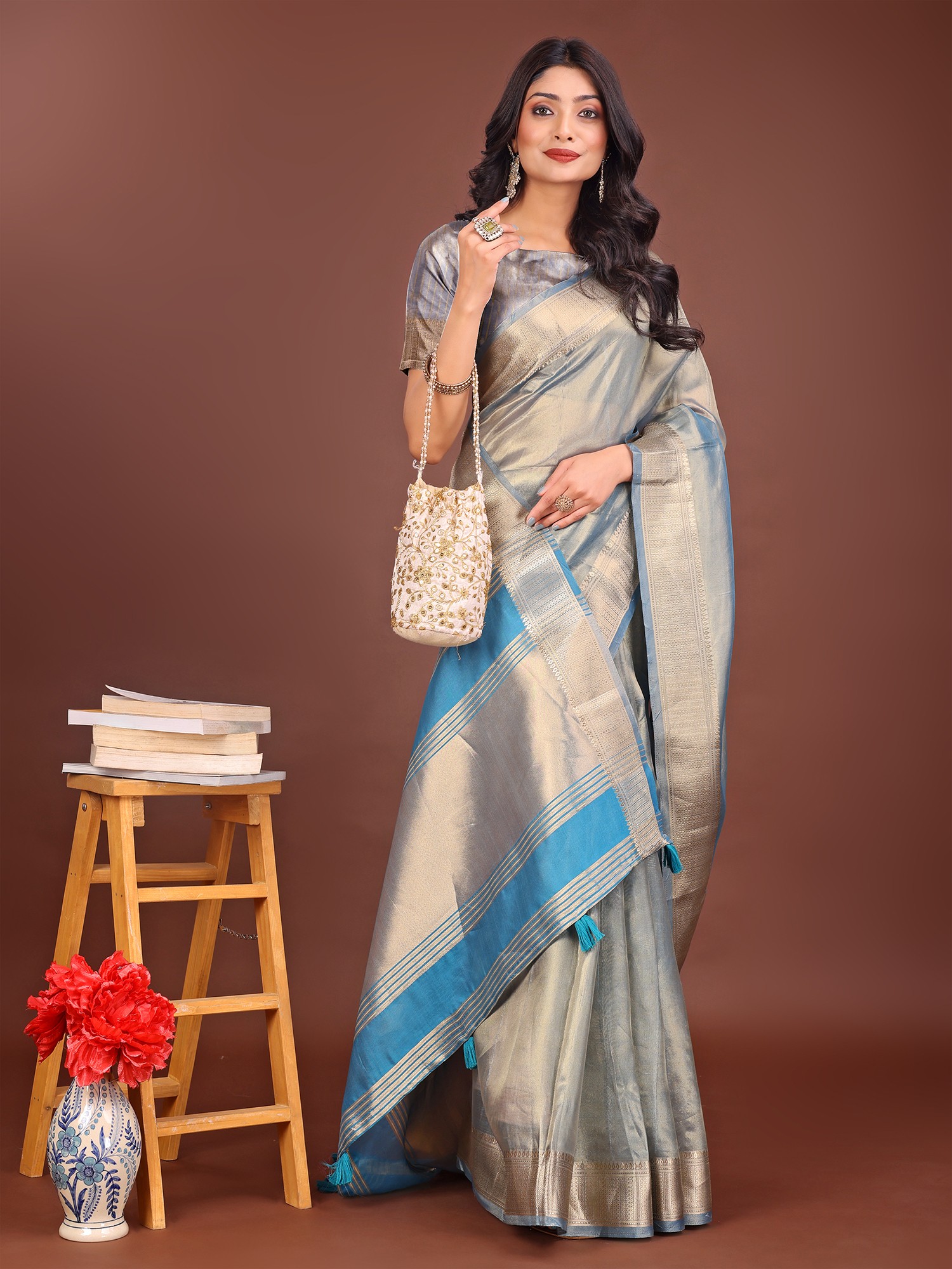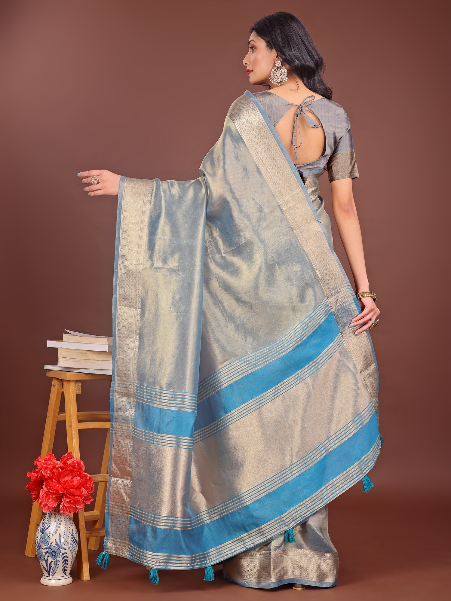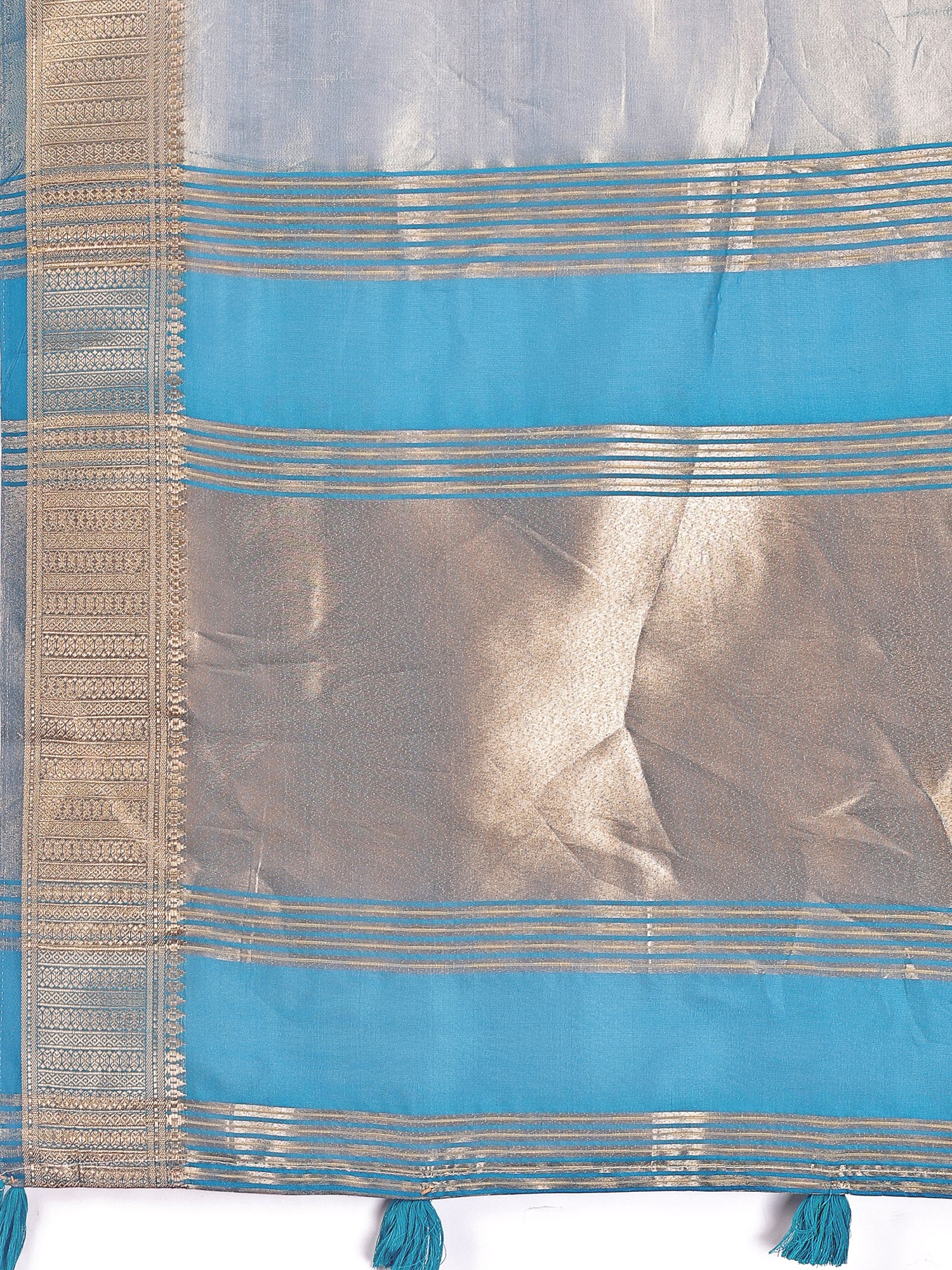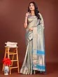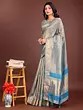 Silver Stripe Pattern Linen Plain Saree with Blouse