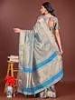 Victoria-Blue Chettinadu Pure Cotton Butterfly Pattern Border Plain Saree With Ikkat Motif Blouse