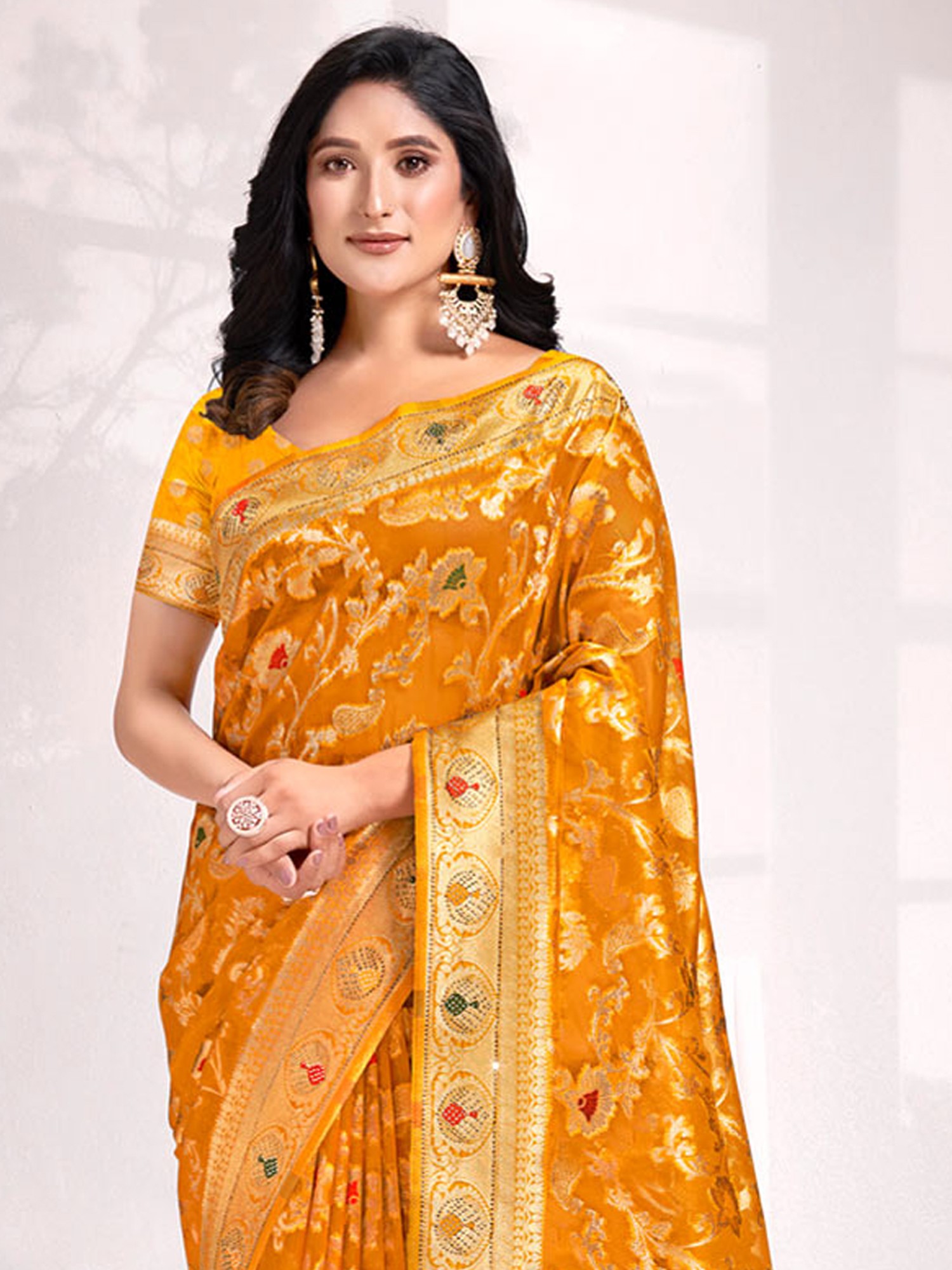 Organza All Over Woven Motifs Festival Wear Saree With Tassels Pallu