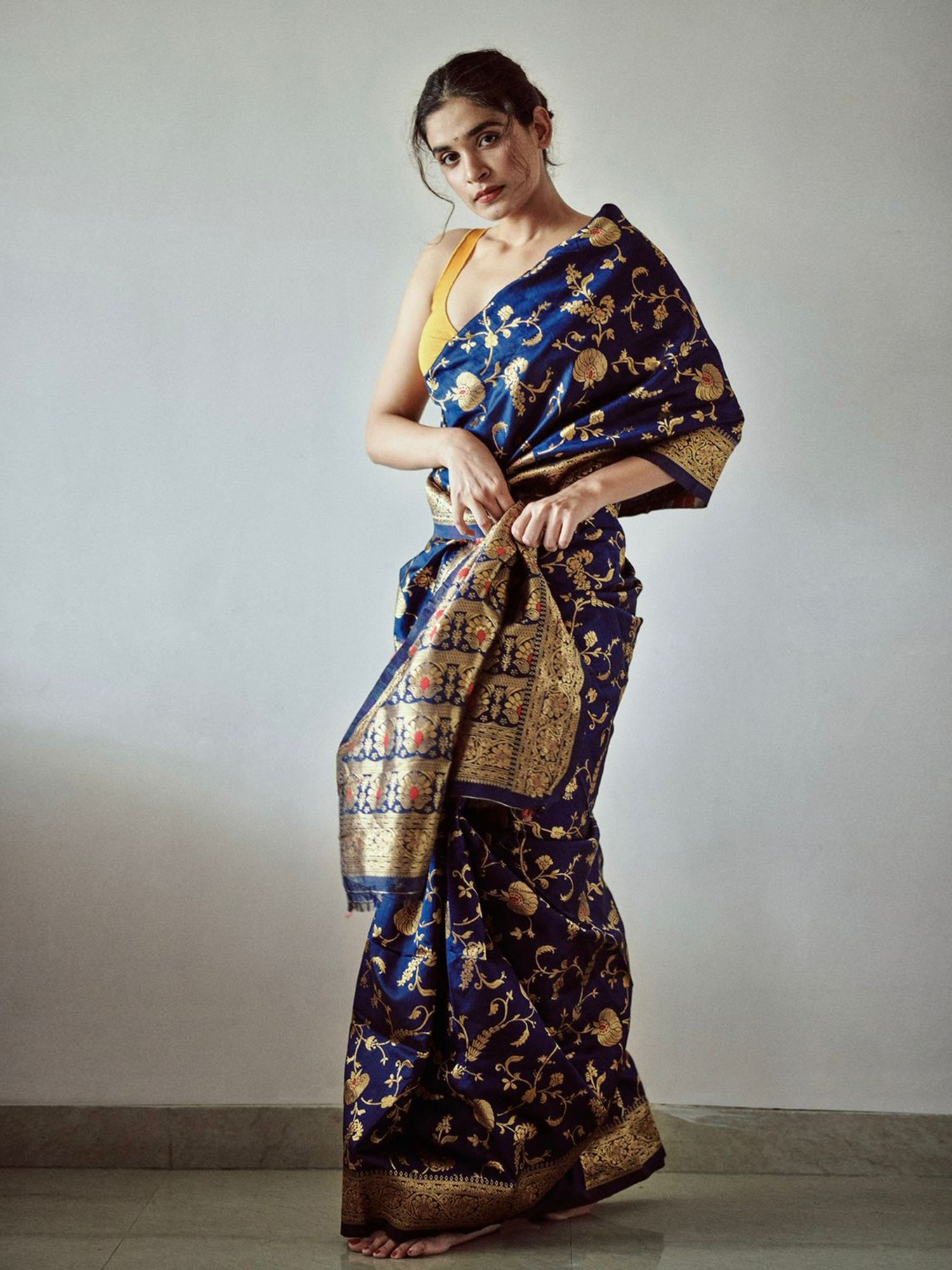 Wrap yourself in the resplendent glow of tradition, where every drape tells a story of heritage and refined artistry. This exquisite piece is designed to be the centerpiece of your most cherished occasions, promising to imbue your presence with an unparalleled aura of sophistication and grace.