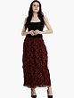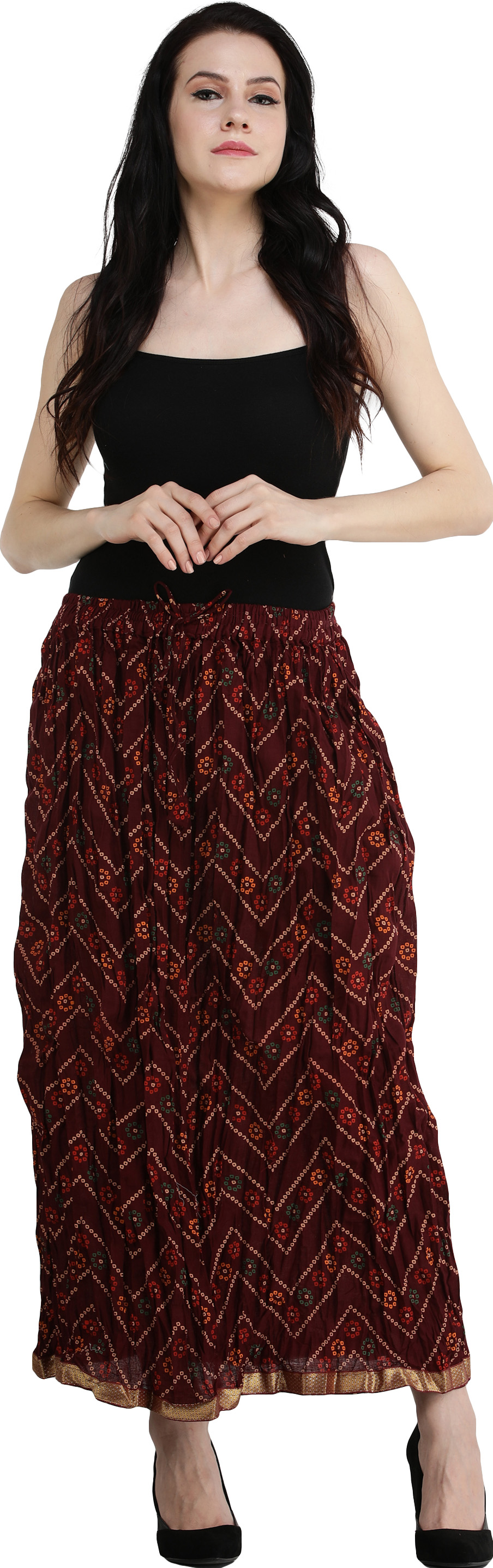 Garnet-Rose Elastic Midi Crinkled Skirt with Gota Border