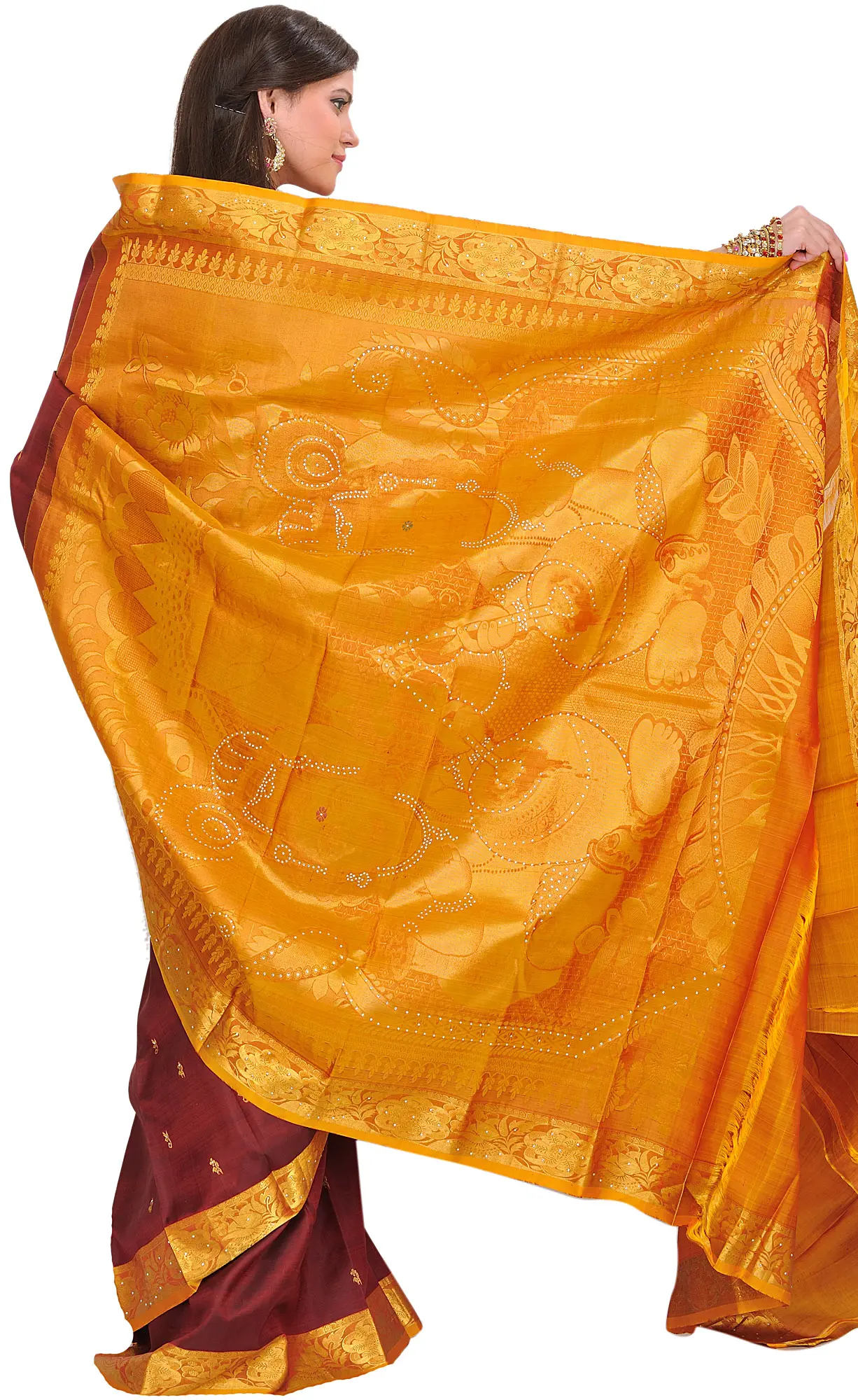 Crushed-Violets Kanjivaram Sari from Bangalore with Woven Butter Krishna on Aanchal